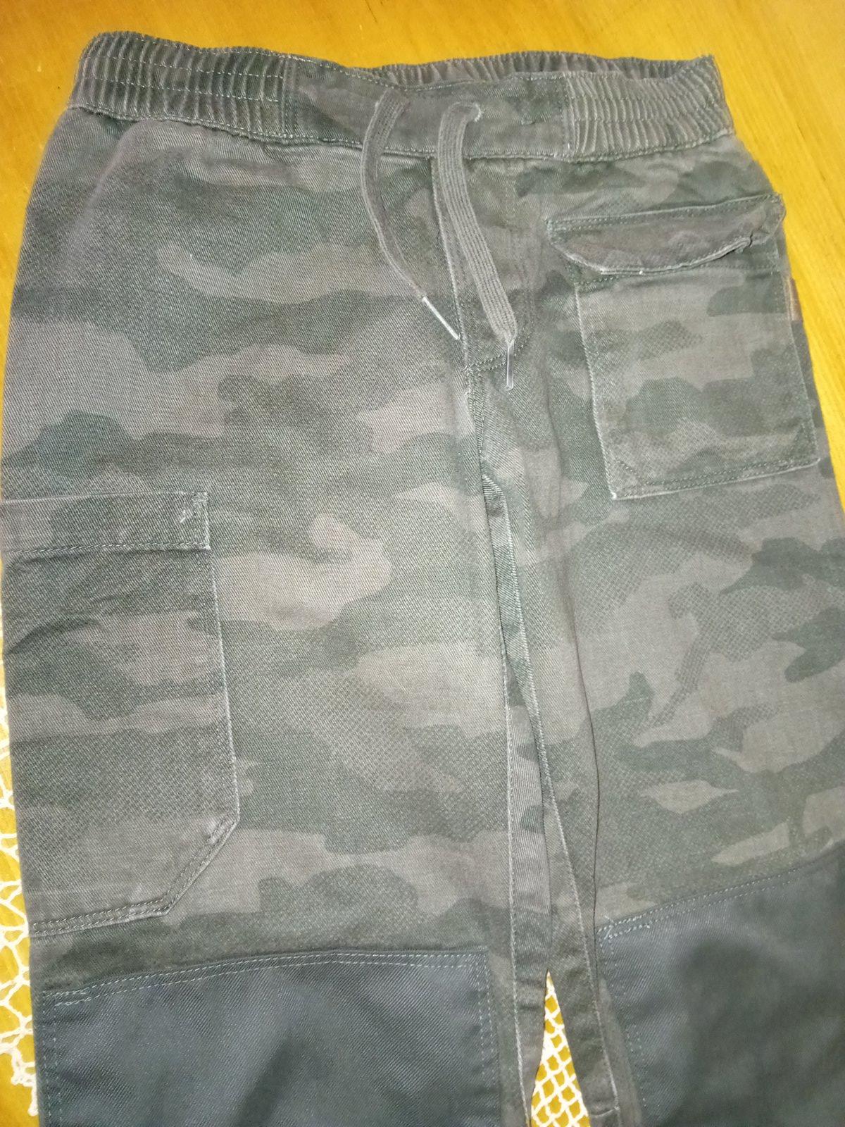 Pekné maskáčové nohavice, v nosenom stave. Mierne vyblednuté pod kolenami. Majú spevnené kolená, funkčnú šnúrku v páse. Super pre malého poľovníka. Veľkosť 128/134.