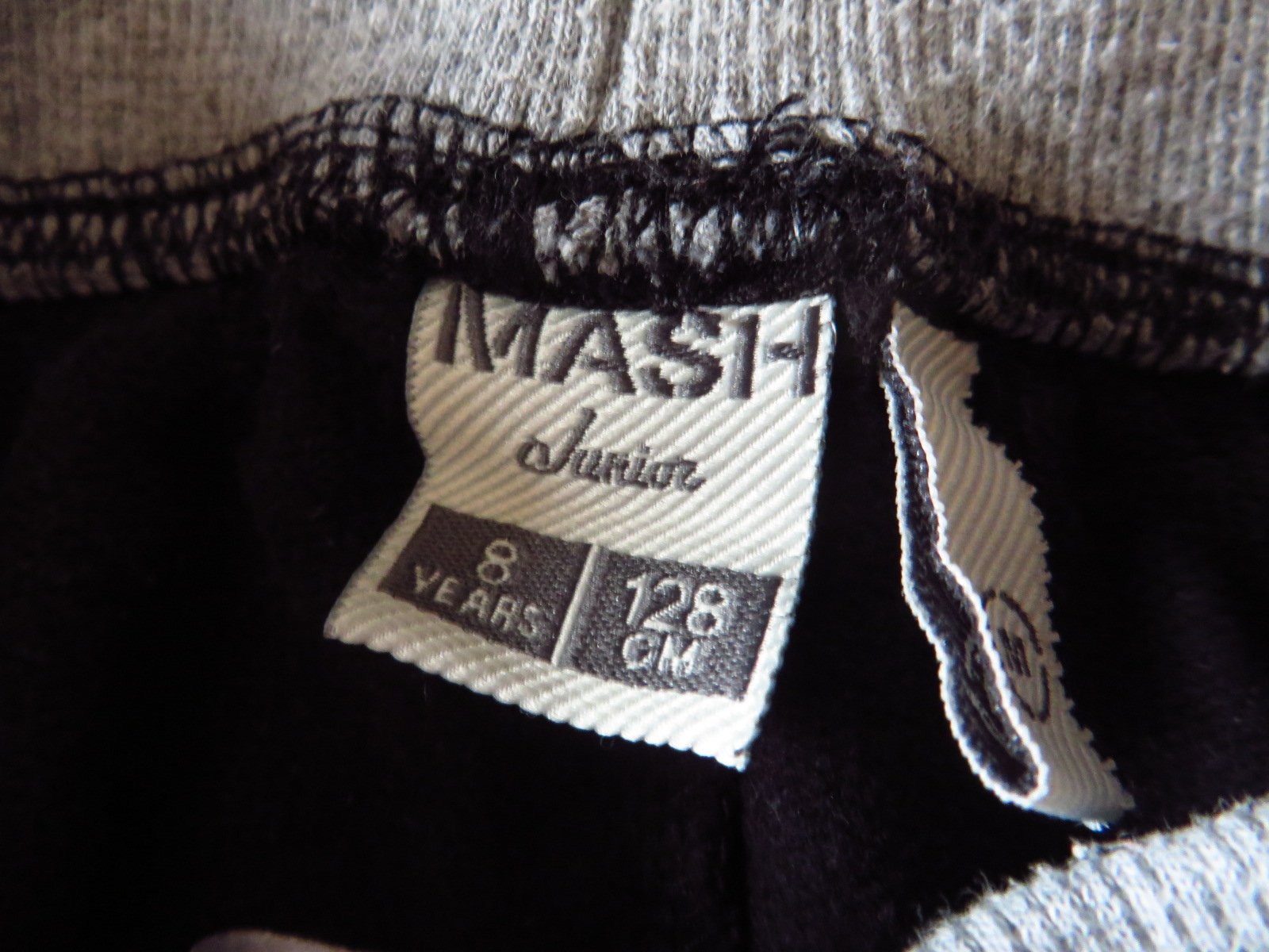 Predám chlapčenské tepláky, veľkosť je 128. Sú v dobrom nositeľnom stave, bez vyťahaných kolien. Majú avšak jednu malú zašitú dierku v spodnej časti na pravej nohe.