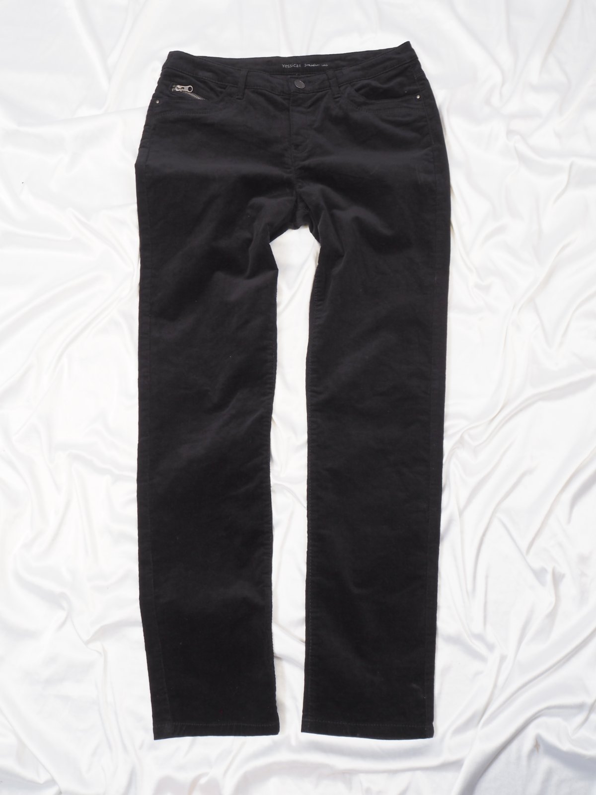 Kvalitné čierne menšestrové nohavice, zapínanie na zips a gombík, makký materiál 97% bavlna, 3% elastan, super stav.