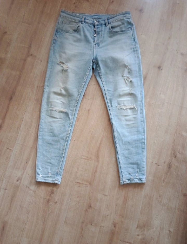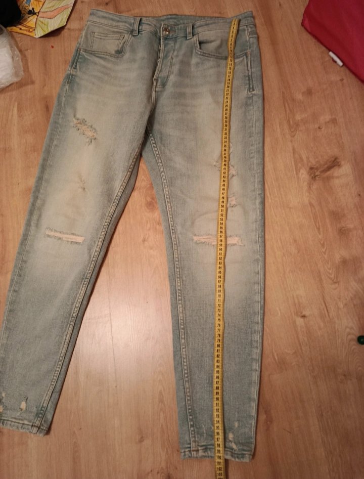 Perfektné pudlové rifle! Veľkosť L, ale kľudne aj do veľk. 44/XXL, sú elastické, treba sa riadiť mierami! Dĺžka - 89 cm, pás - 2x 43/52 cm, boky - 2x 57/65 cm, predný sed - 41 cm, zadný sed - 43 cm.