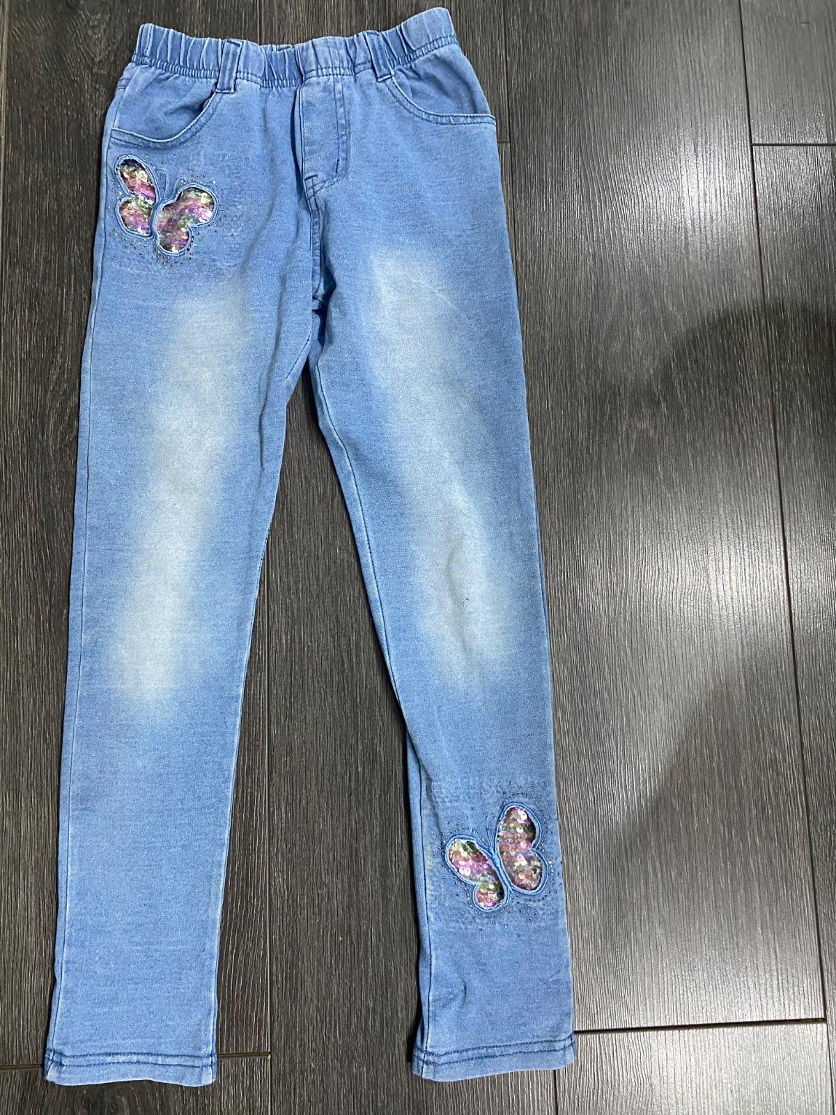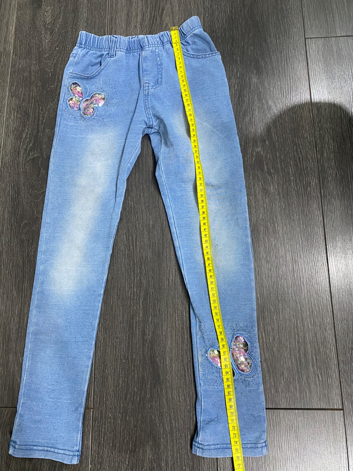 Upozorňujem majú nedostatky kolena vyšúchané majú dierky a z vnútornej strany nálepky(Motýliky) Sa odlepuje…, Uvedená veľkosť orientačné miery odfotené prosím riaďte sa tým