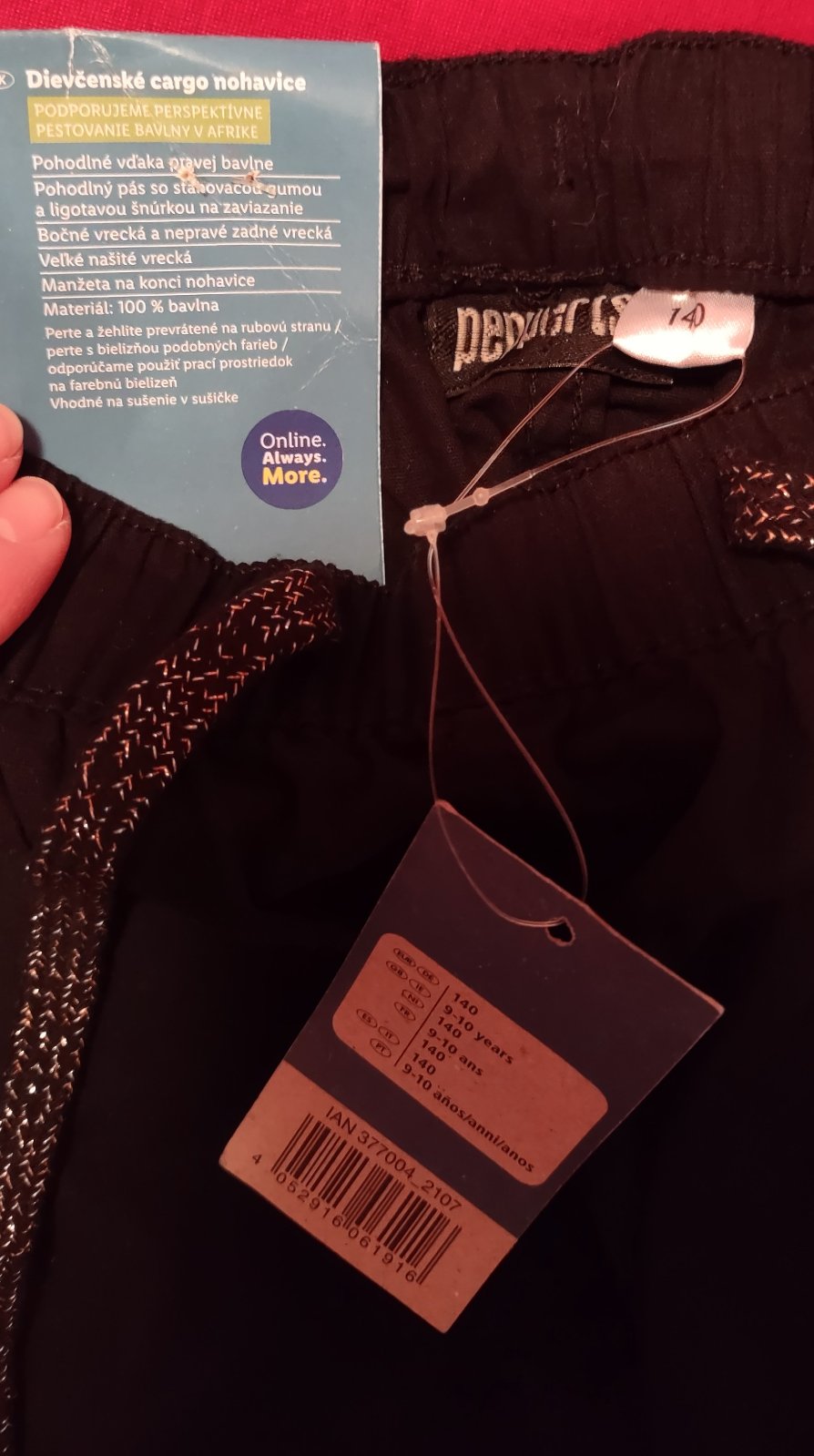 Predám dievčenské Cargo kapsačové nohavice s visačkou. 100%bavlna, čierne.