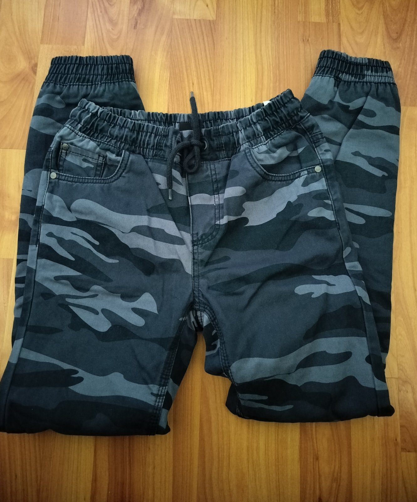Malo nosene bez poskodeni. Super na chudeho chlapca, v pase gumicka.