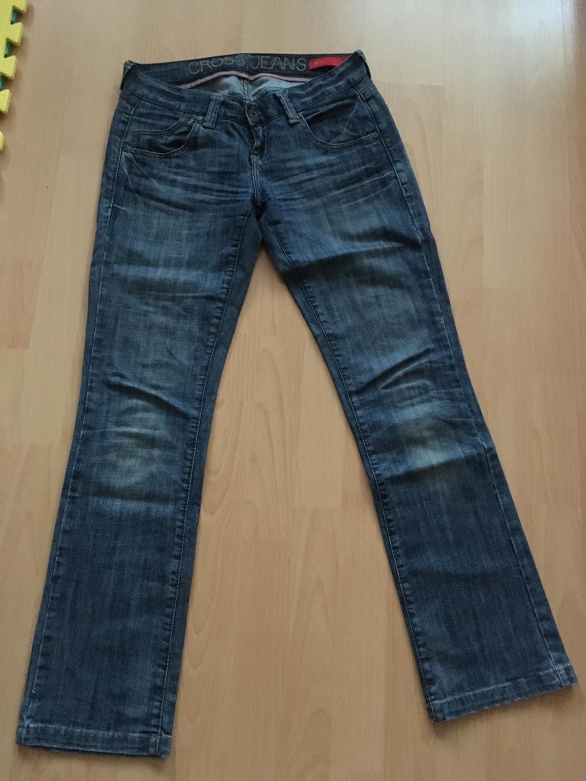 Sýto modré rifle, vo výbornom nosenom stave. Jedine na spodku vidno záhyby po vyhrnuti. Pás: 34 cm, Boky: 41 cm, zadok cca 25-26cm. Dĺžka: 98 cm. Materiál: 95% bavlna, 5% elastan. Jemne strecovy.