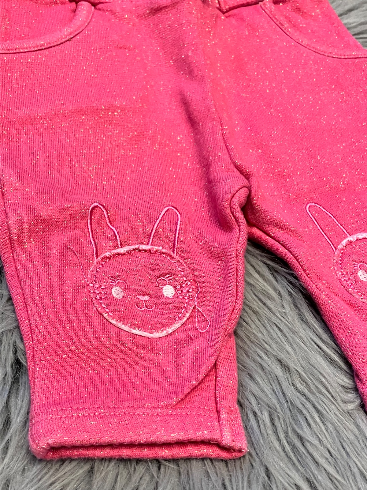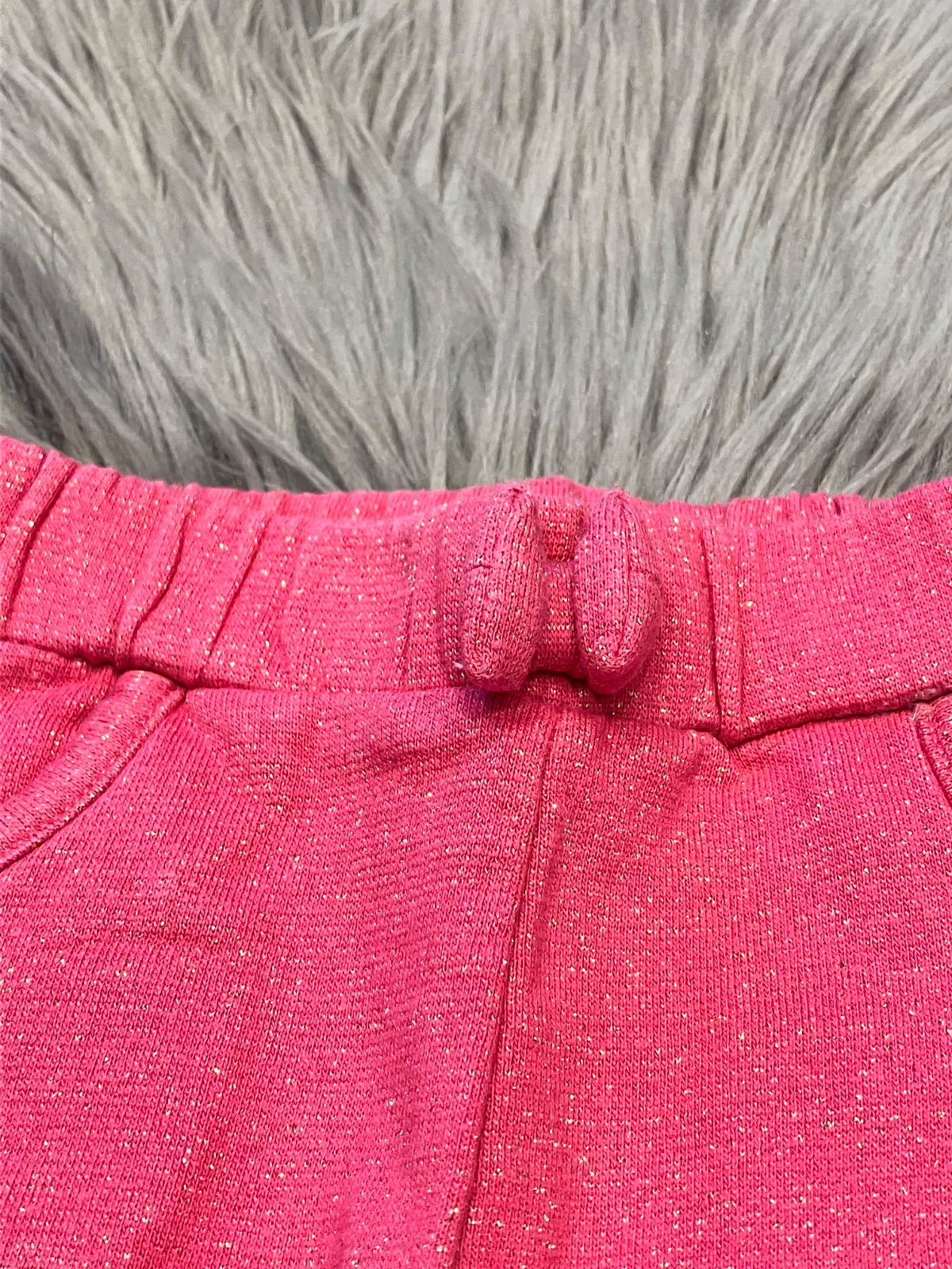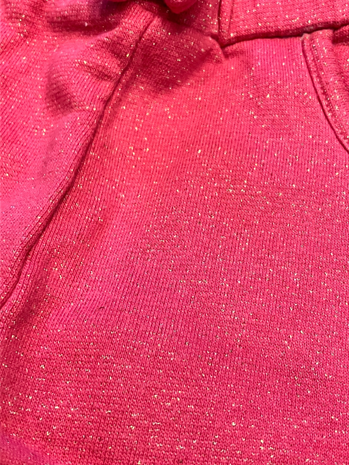 Dievčenské lesklé tepláky, pás na gumu, dve bočné vrecká, vo vnútri jemný flís, materiál 86%bavlna 9%polyester 5%metalizované vlákno.