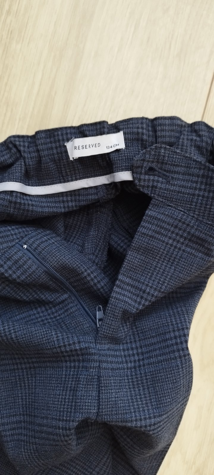 Nohavice značky Reserved, veľkosť 134. V páse sa dajú regulovať. Trochu ošúchané na jednom kolene, snažila som sa to odfotiť viď. foto.