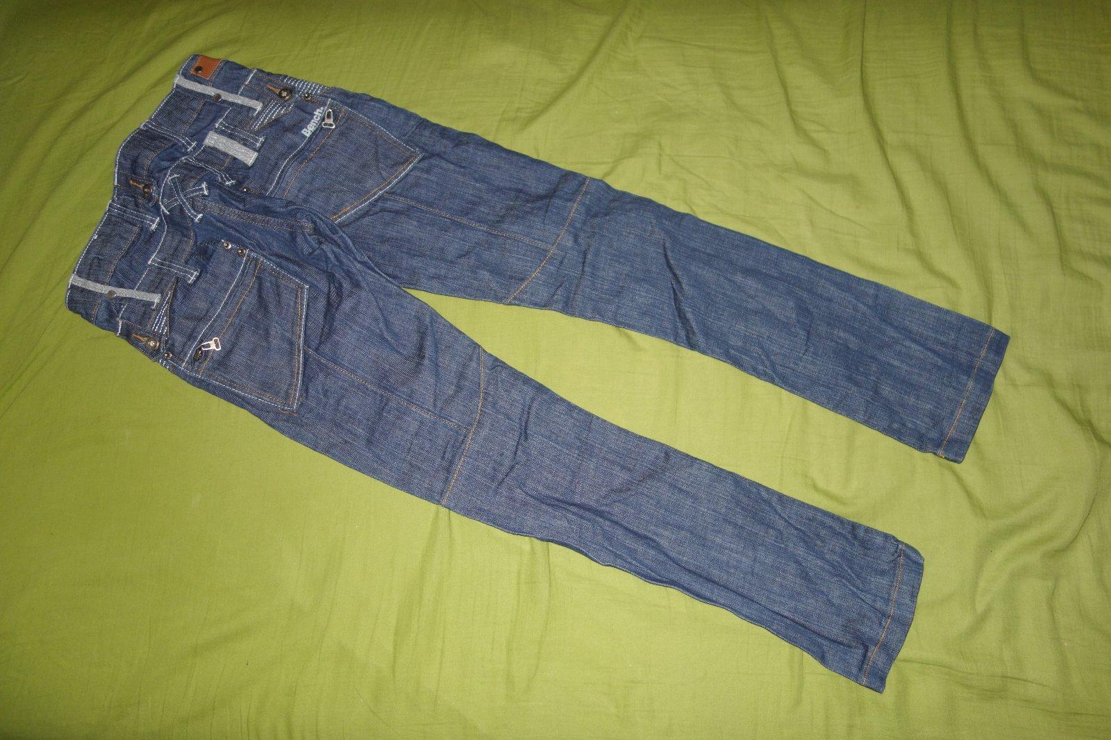 Krasne riflicky vo vybornom stave. Su to slimky. Velkost je uvedena ako W26, L30 (podla rozmerov by to mala byt 152-ka). Su mierne elasticke (obsahuju 1% elastanu)