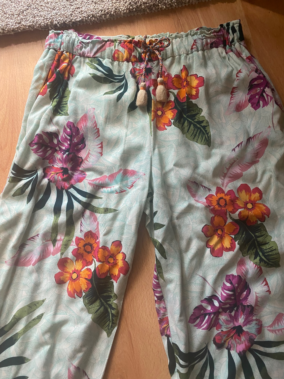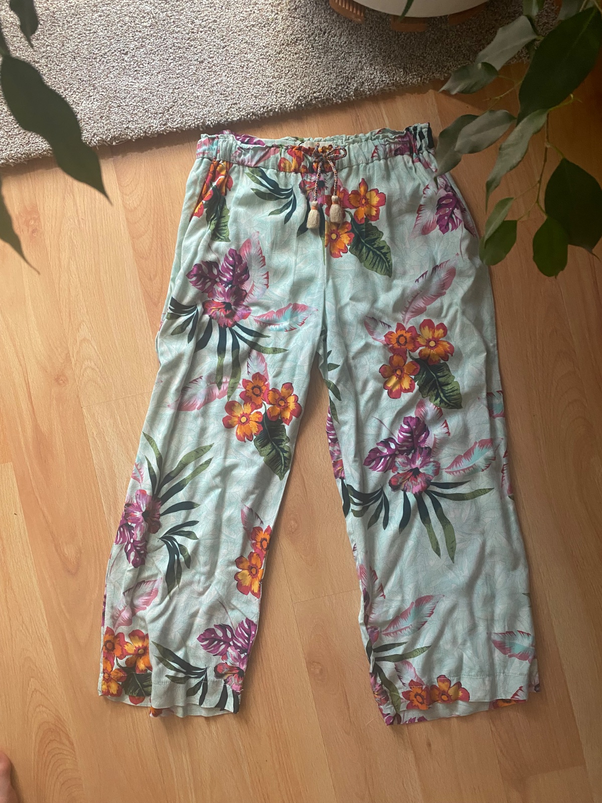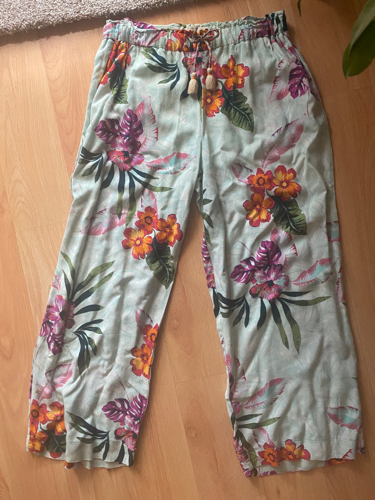 Ľahké letné nohavice . Nosené vo veľmi dobrom stave . Sú pod kolena ( skôr 3/4 ) , nie sú úplne dlhé .🌺