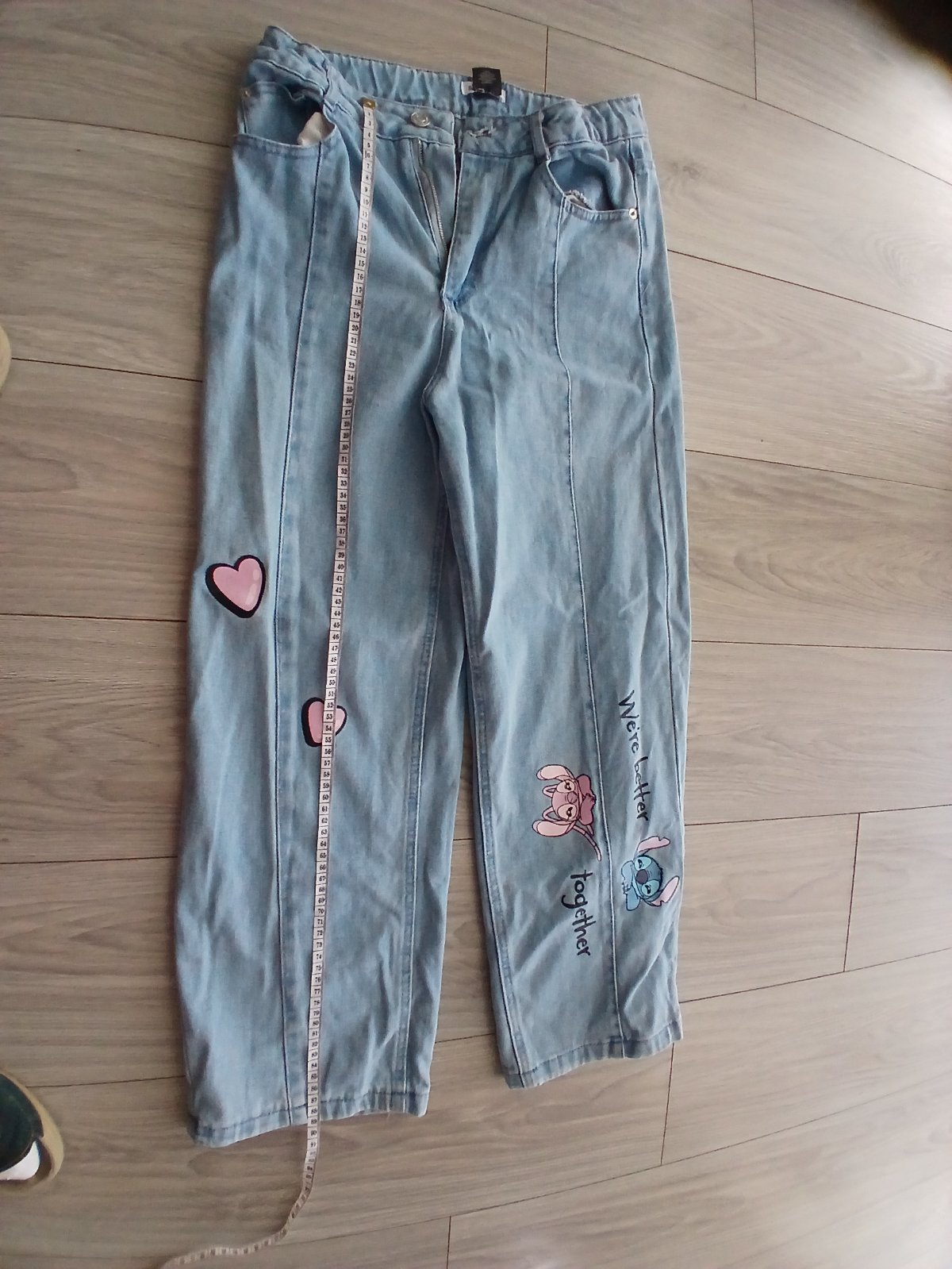 Krásne mäkké rifle širokého strihu.Dcére sa veľmi páčia, ale sú jej kráteke, je vysoká.Nenosené.Povedala by som, že sedia skôr na 158 veľkosť.