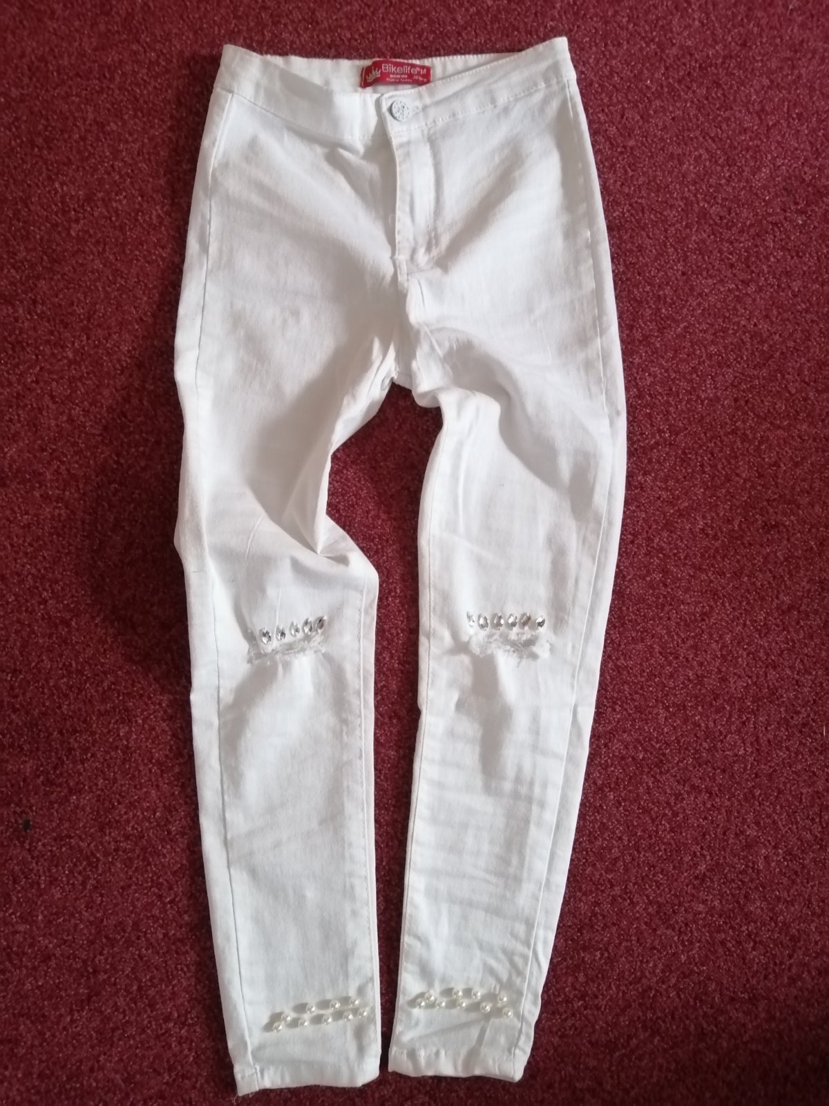 Nádherné rifle, 👌super elastické , nenosene, no mne žiaľ úzke 😢 píšu M no podľa mňa skôr S. V prípade záujmu bližšie info rada podám. pas v klude 32x2cm, dl.86cm, boky 39x2cm, PS- 25cm, ZS- 28cm, stehno 21x2cm.