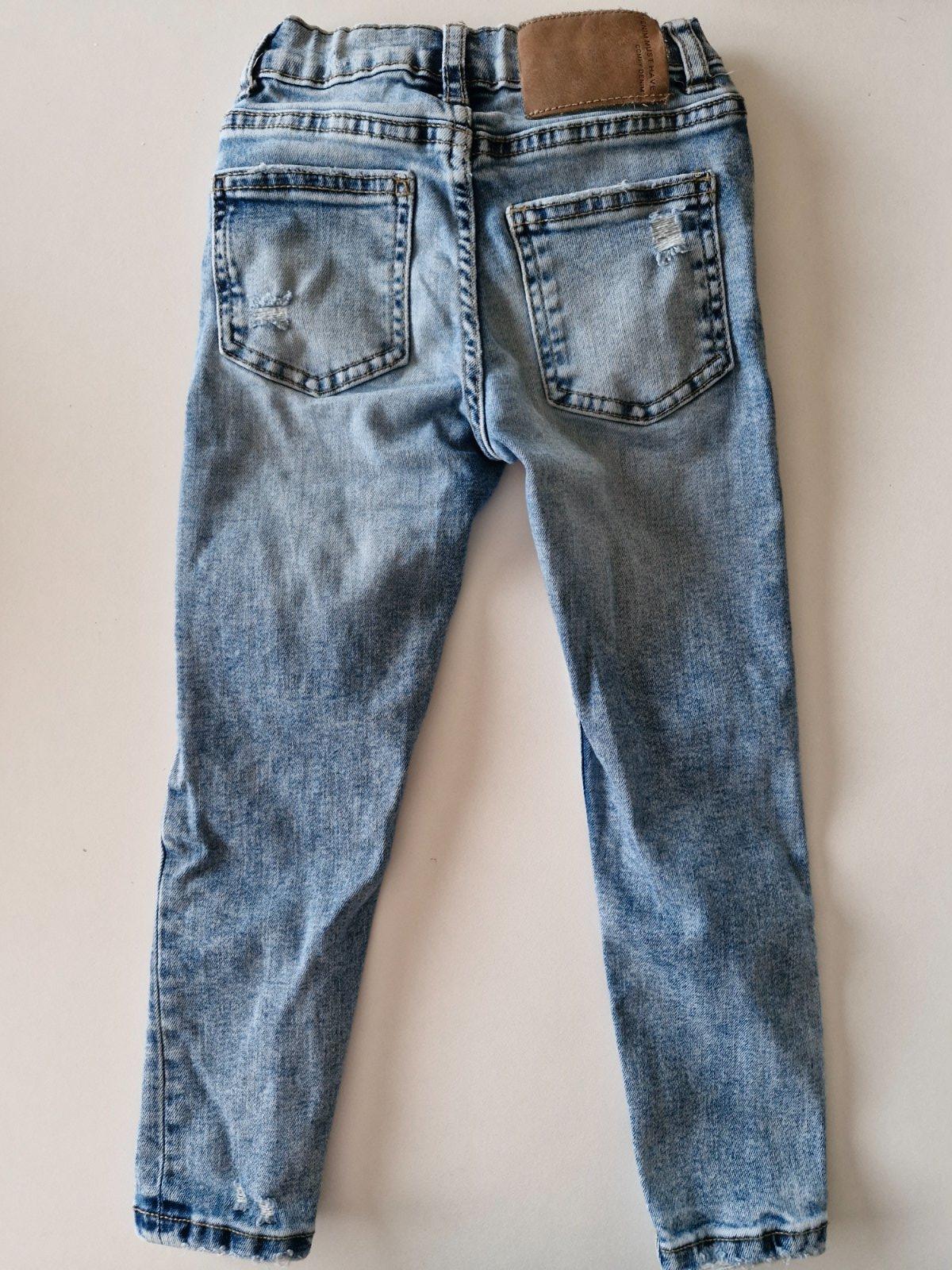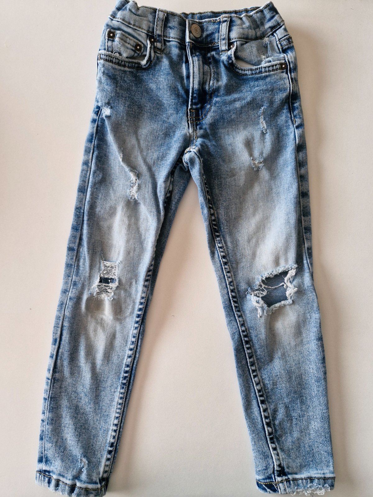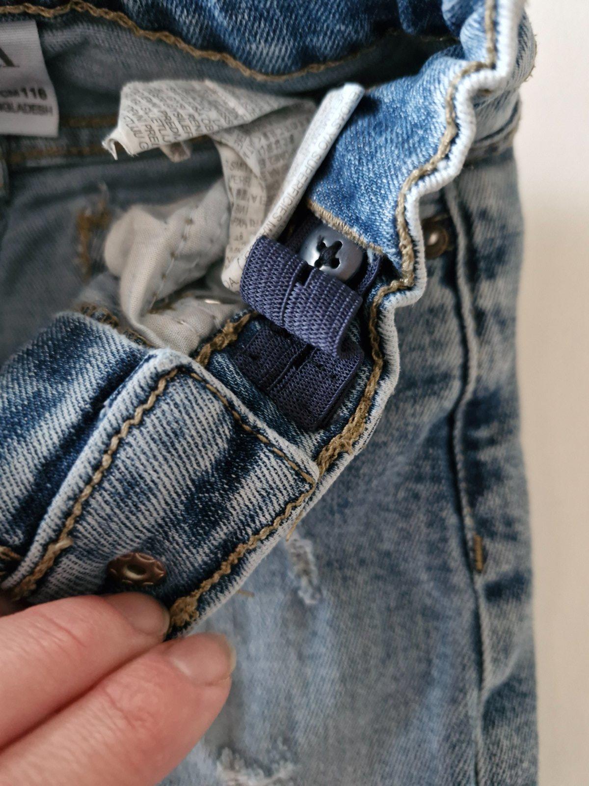 Rifle dobrý nosený stav, bez poškodení, pás regulovateľný, k nim darujem pepco tenšie nohavice na gumu v dobrom nosenom stave. Rifle majú uvedené 110, ale sú väčšie, sedia na 116.