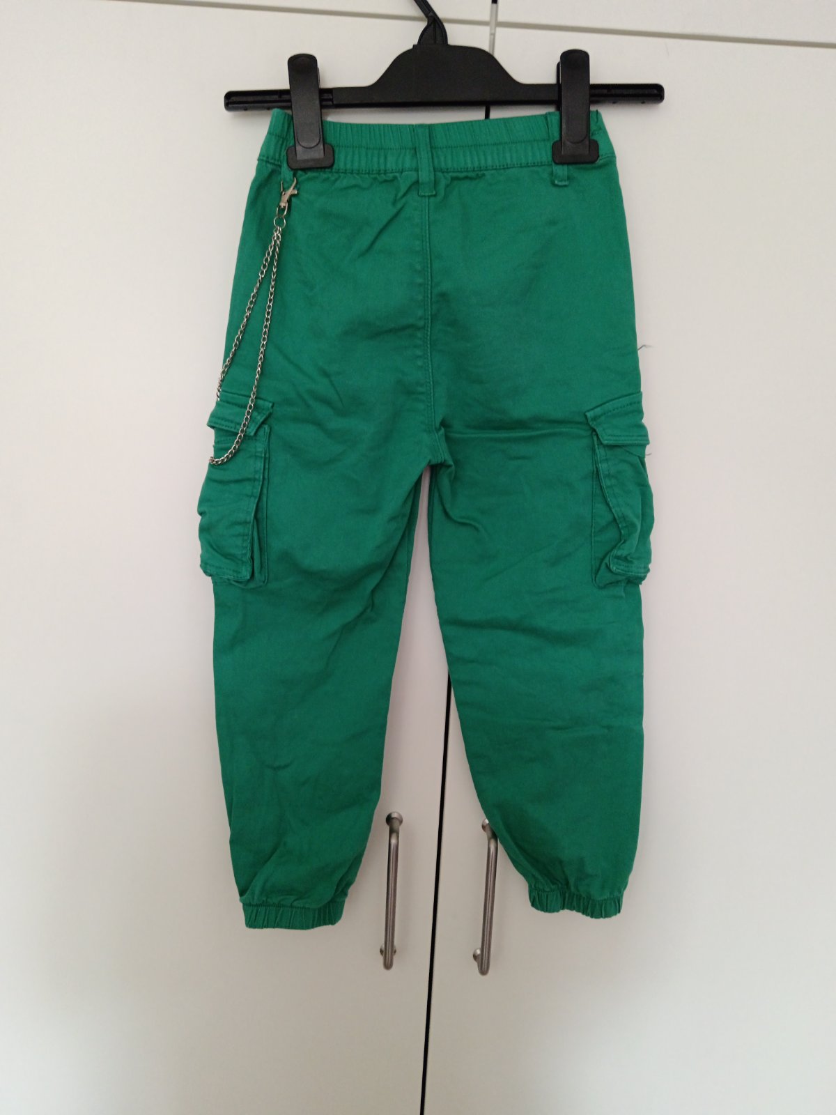 Predám používané (po jednom dieťati), no vo výbornom stave nohavice tmavozelenej farby, veľkosť 110 (5 rokov) na prechodné obdobie jar - jeseň. Veľkosť: pás má v nenatiahnutom stave 48cm, dĺžka noh...