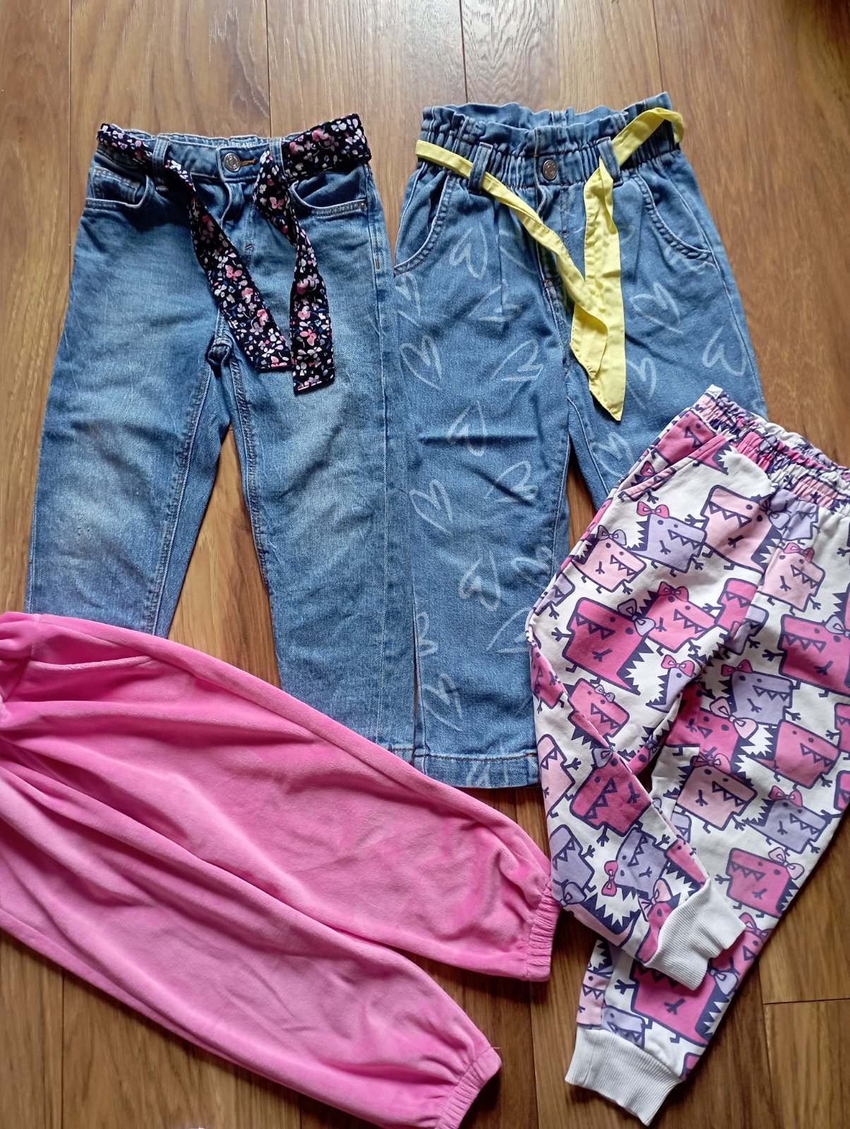 Nosené dobrý stav vacsinu ponosite dlhšie 2 krát rifliky a 2 krát tepláky svetle oteplene a zamatové príjemné .Na 1 rifloch kus na kolene suchnute.Cena spolu