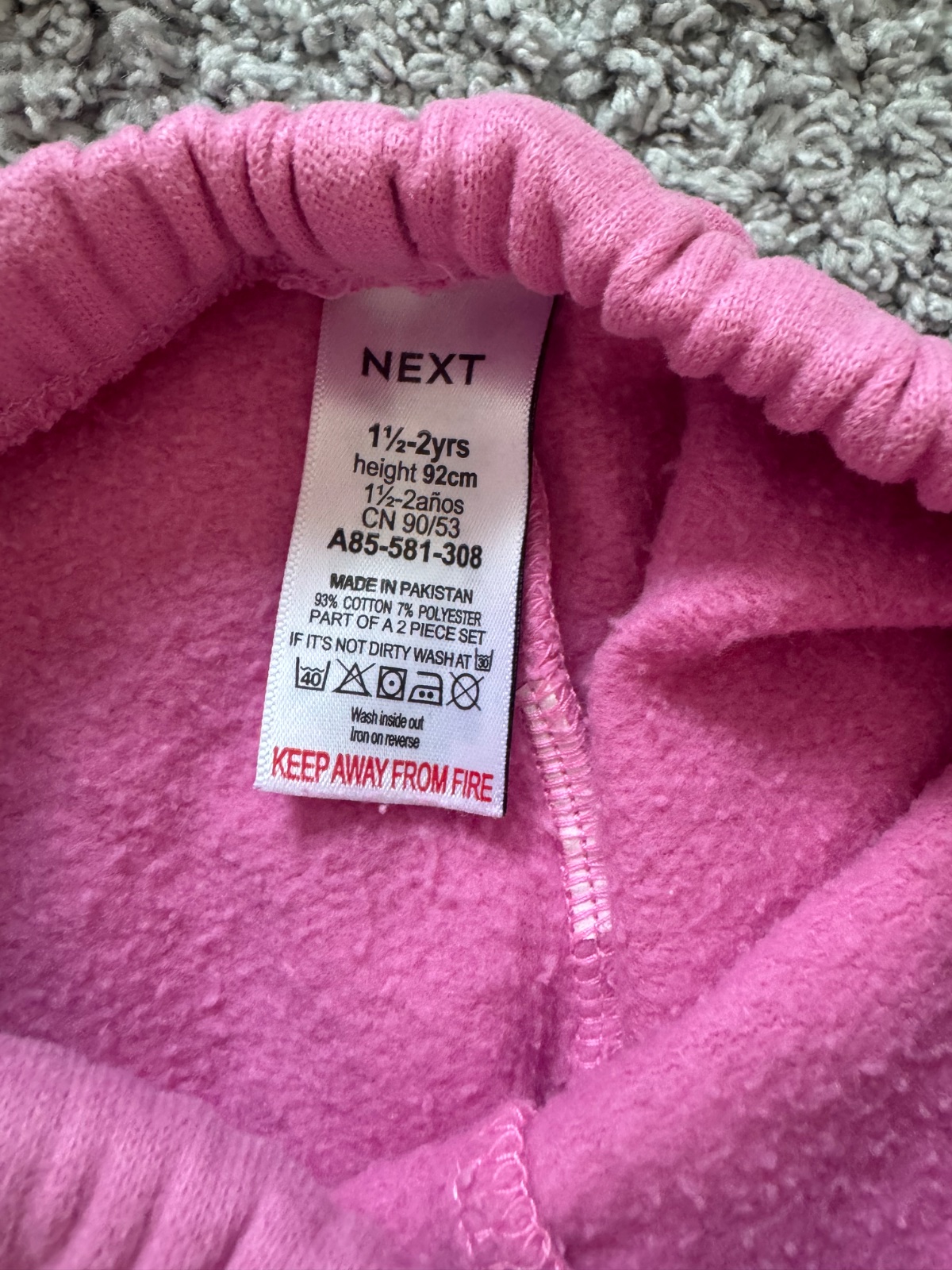 krásne zamatové tepláky,zn.next,č.92,1,5-2 roky,majú len jednu chybičku, na ľavej nožke sa začala párať niť,ale šikovná mamička si to aj podšije,ináč sú ako nové,párkrát oblečené.
