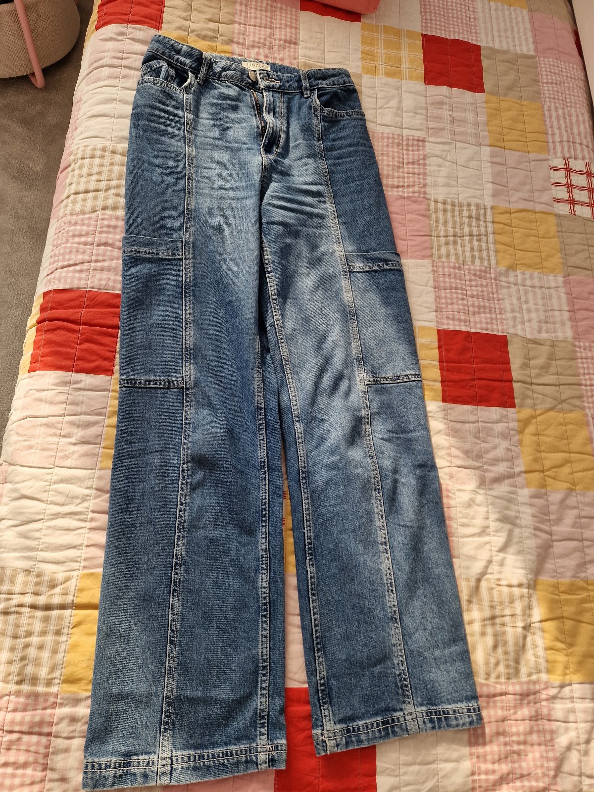 Nádherné rifle od Lindexu. Zopár krát oblečené. Kvalitné, bez akýchkoľvek známok nosenia. Len obliecť a ísť. Dĺžka 100 cm, pás 34 cm, je tam aj sťahovateľná gumička. Tak na 12-13 rokov. Širší strih, na bohu vrecká. Nie sú elastické. PC bola 39,90. Kto pozná Lindex, vie aké sú ceny...