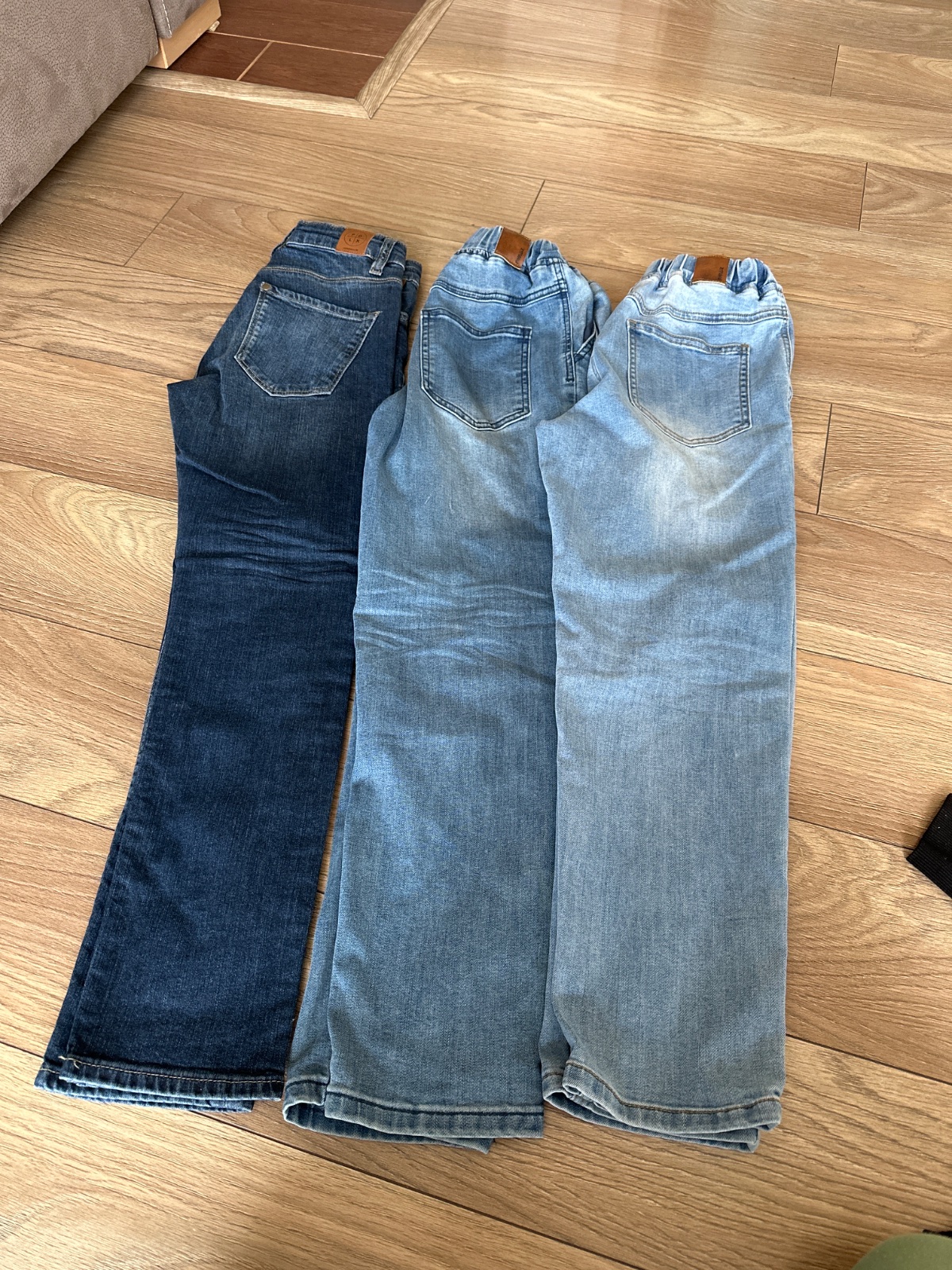 Troje rifle vo vybornom stave. Prve tmvomodre su uplne ako nove, skor uzsieho strihu, bledsie su volnejsieho strihu. V pase upravitelne vsetky 3. Cena 9€/ks