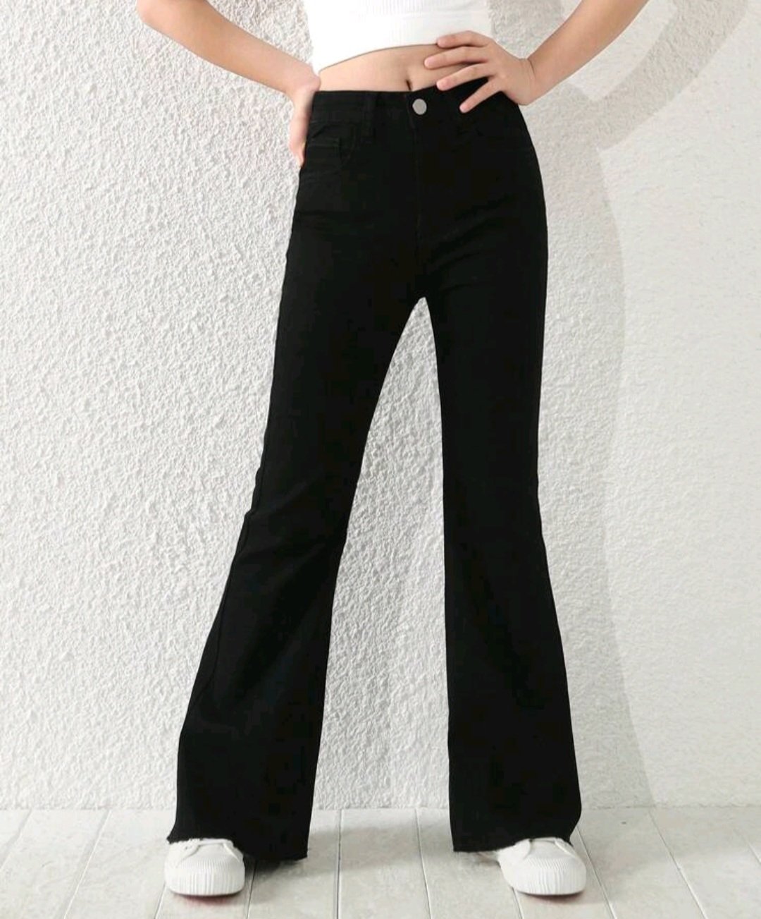 Trendy dievčenské rifle, mierne rozšírené. V páse gumička na prispôsobenie. Vpredu aj vzadu funkčné vrecká.