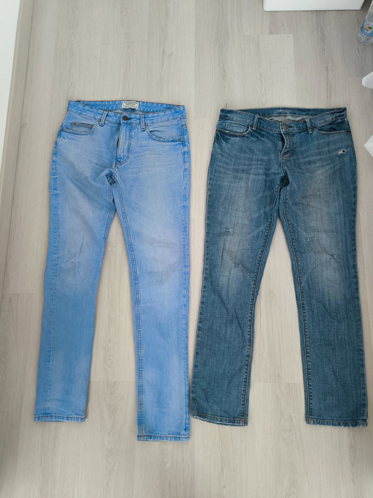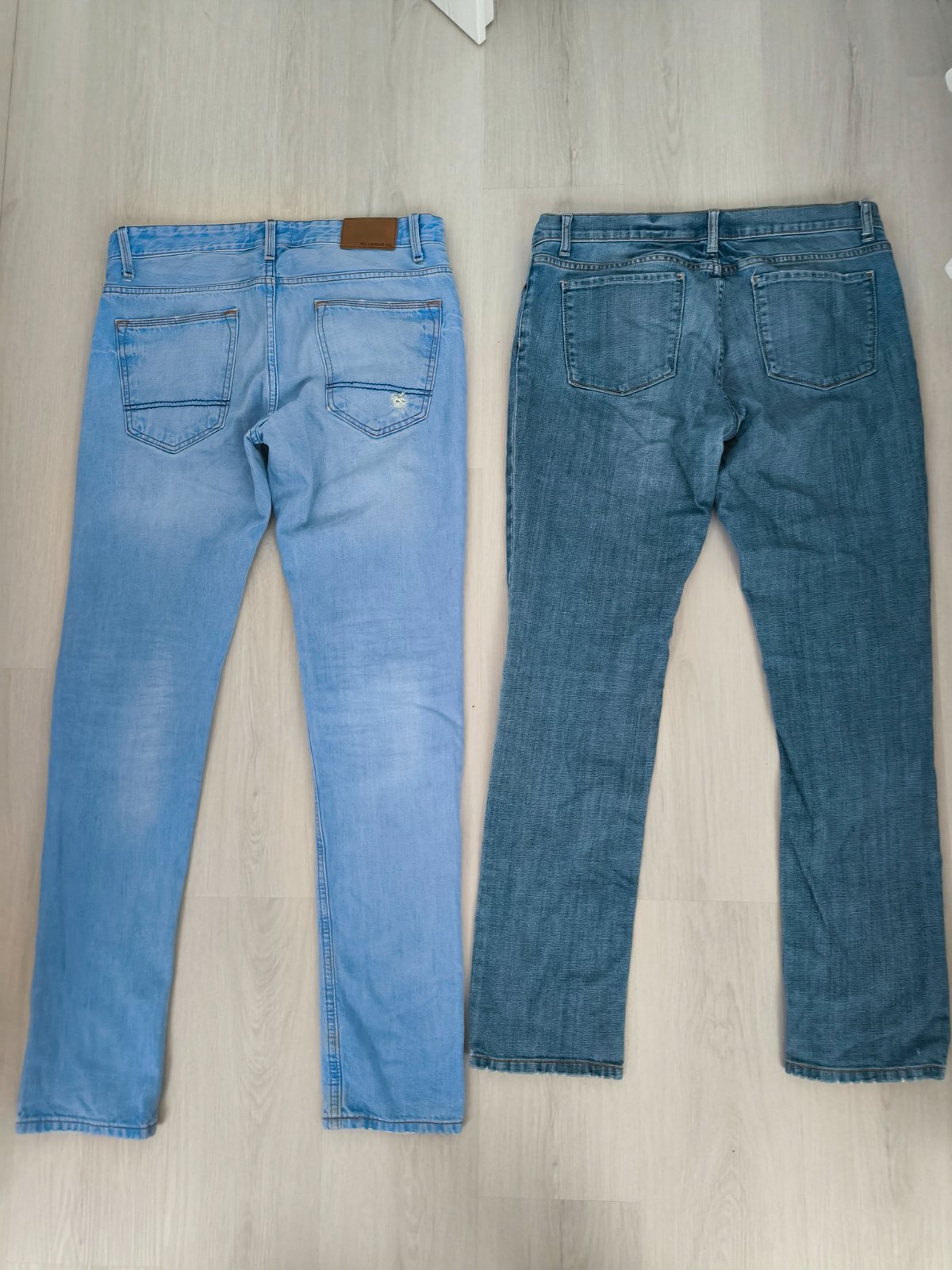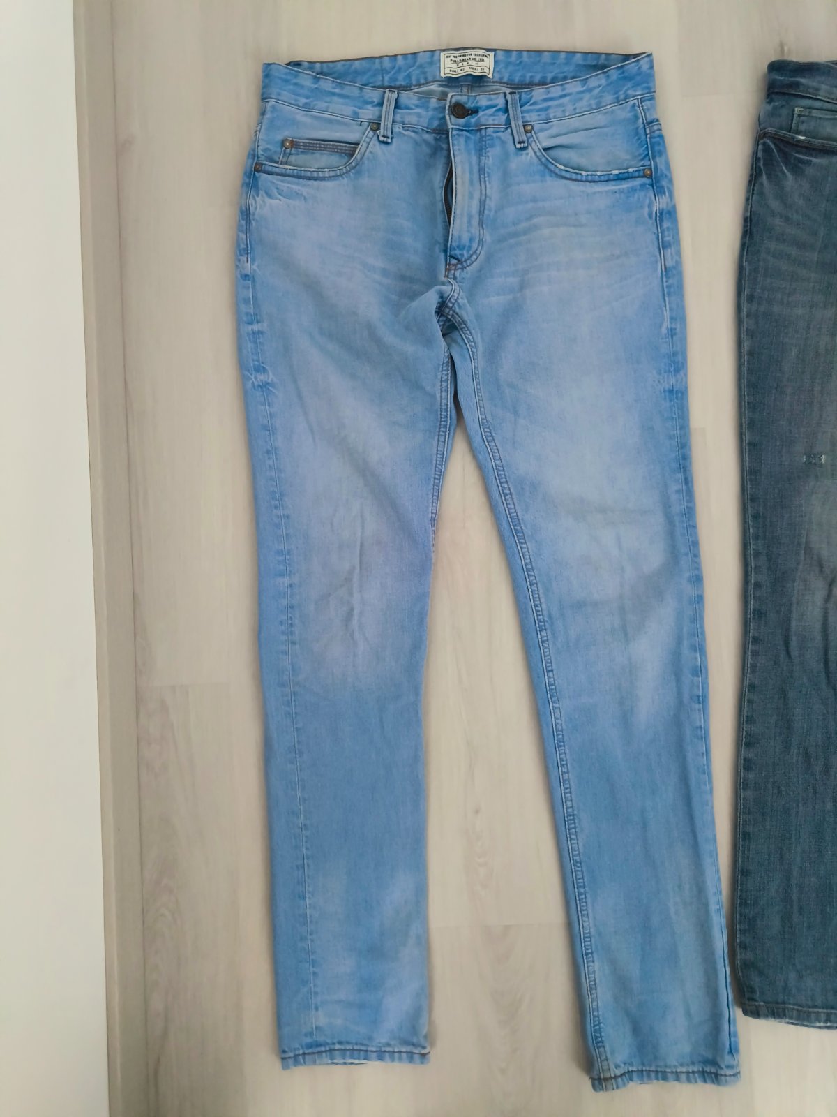 Ako nové svetlomodré rifle zn.Pull&Bear a tmavomodré pánske rifle zn.London Jeans, veľkosť 32/EUR42,cena iba 5e/ks
