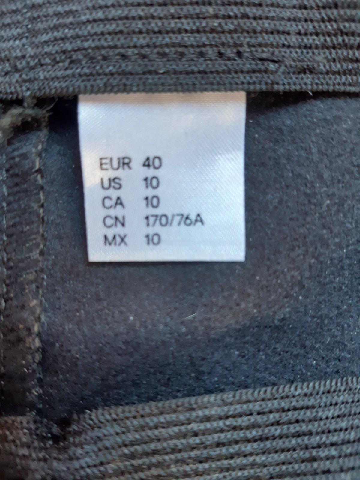 Raz oblečené, bez poškodení. Vonkajšia dĺžka 105 cm, vnútorná dĺžka 79 cm, pás na gumu 35-38x2 cm, stehno 27x2, predný sed 27 cm, zadný sed 40 cm