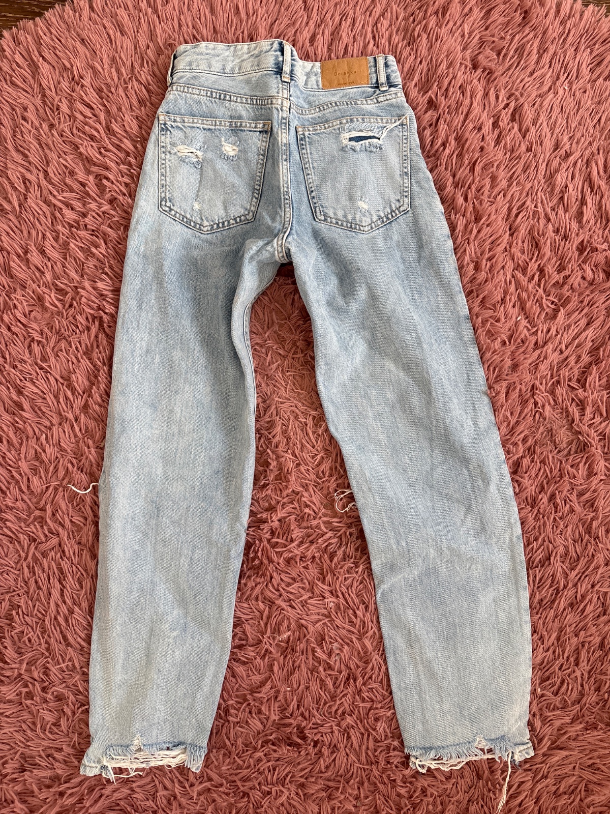 Moderne roztrhane rifle,nosene na striedacku bez poskodeni