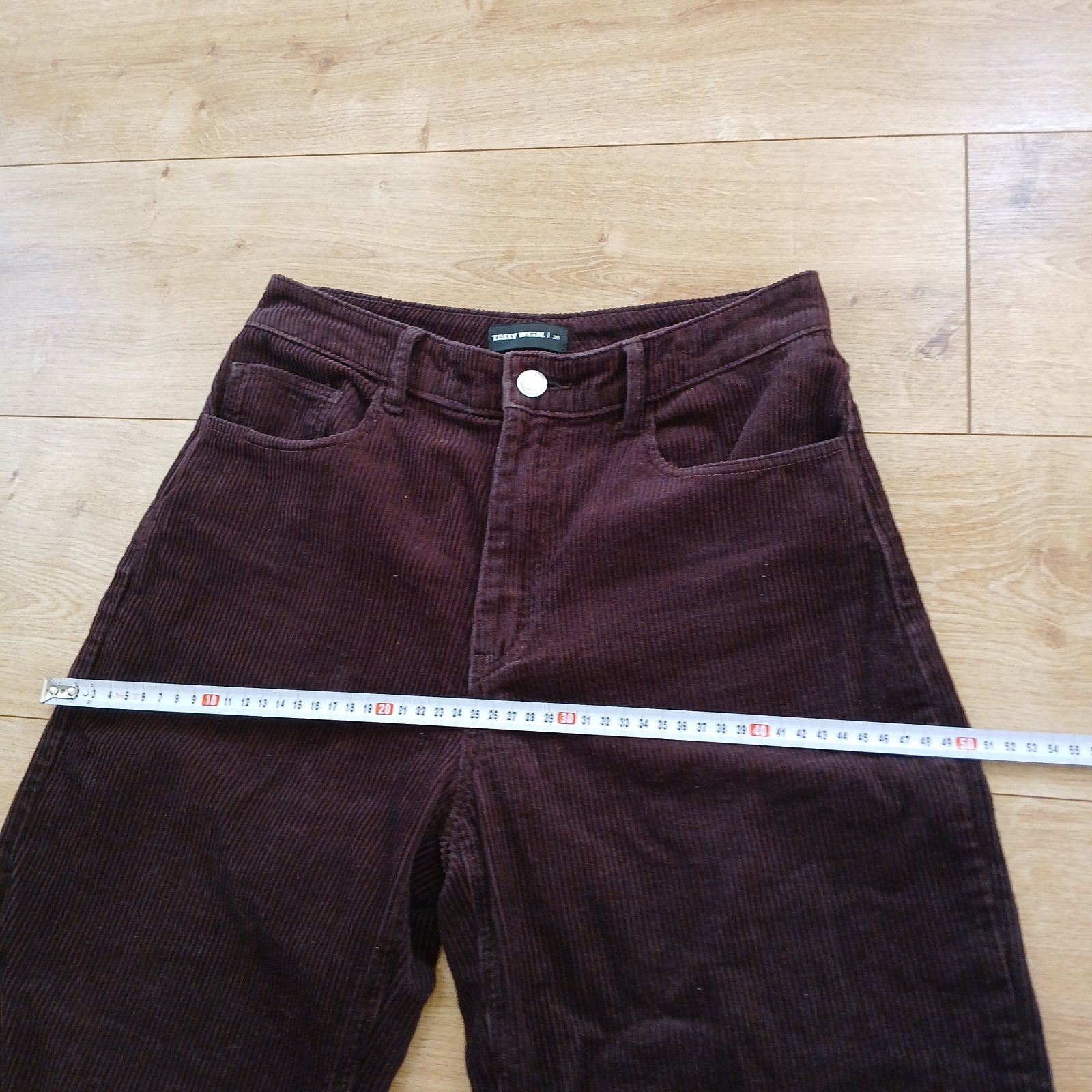 Tmavohnedé bavlnené menčestráky s vysokým pásom