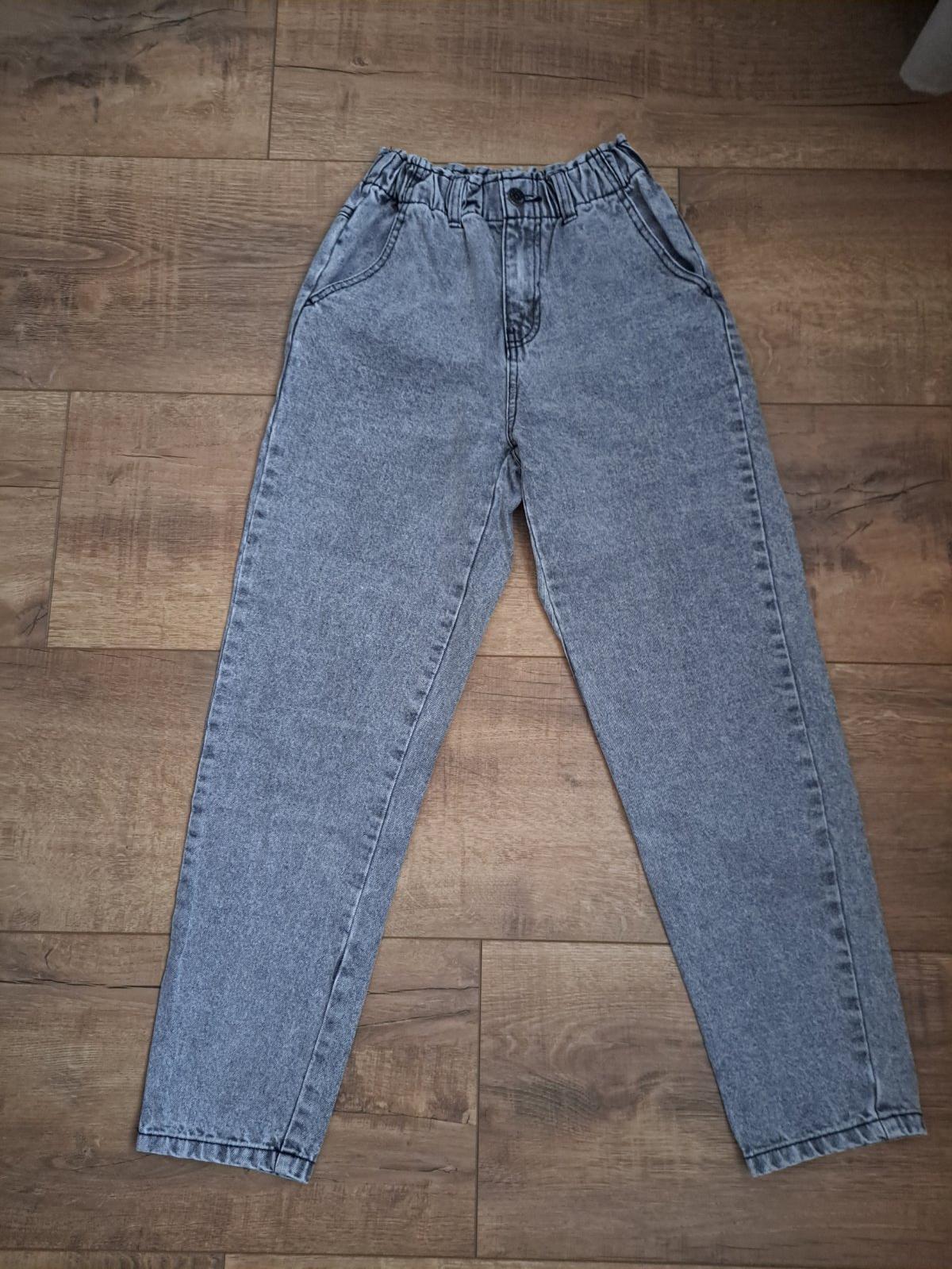 Pohodlne rifle na gumu, vysoky pas, široky strih dole uzsie