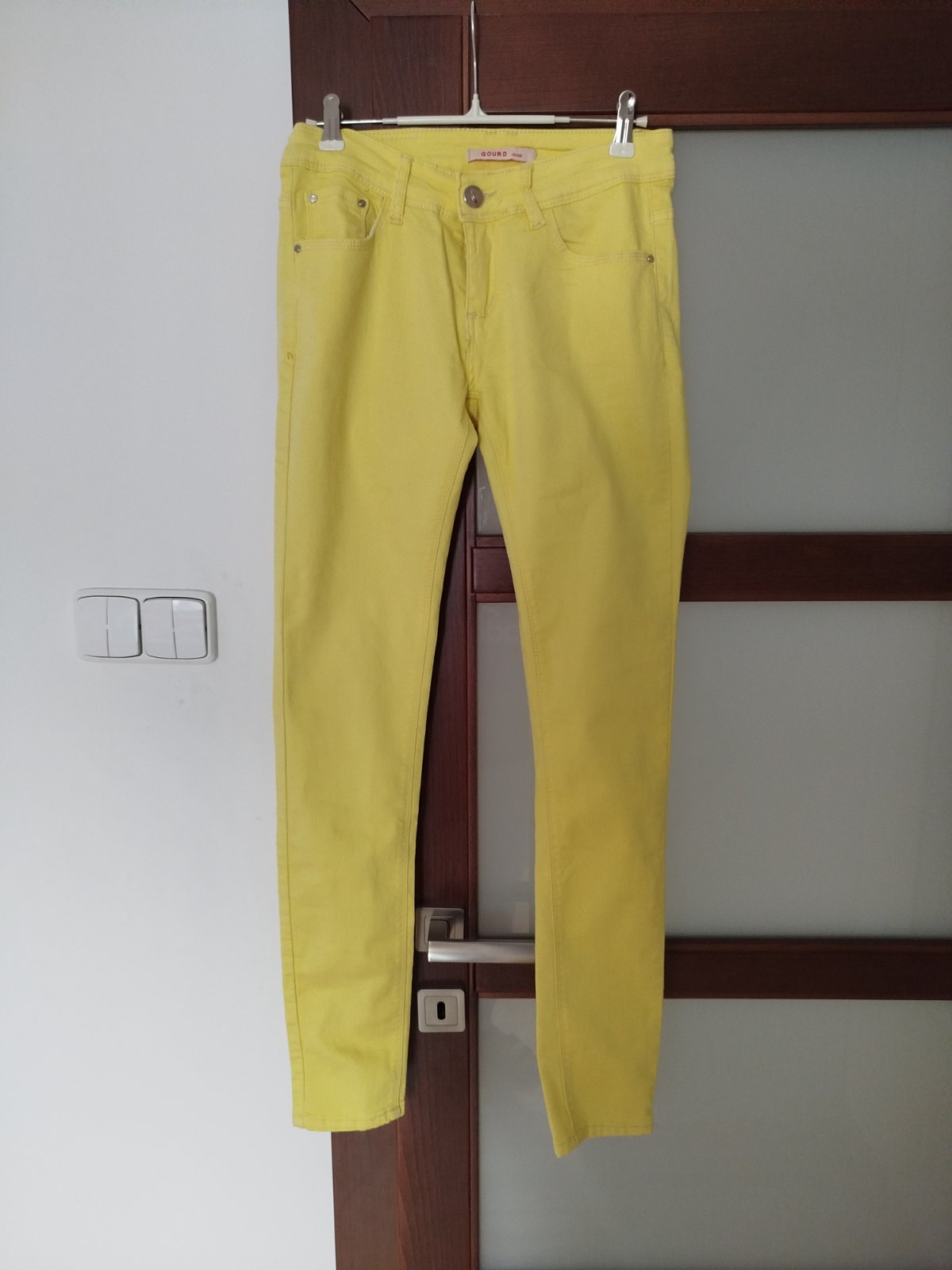 Krásne skinny jeggins, veľkosť odhadom, bez poškodenia, farba žiarivo žltá