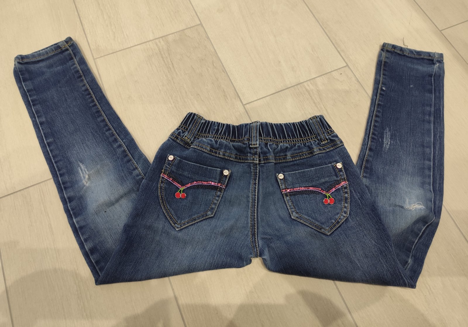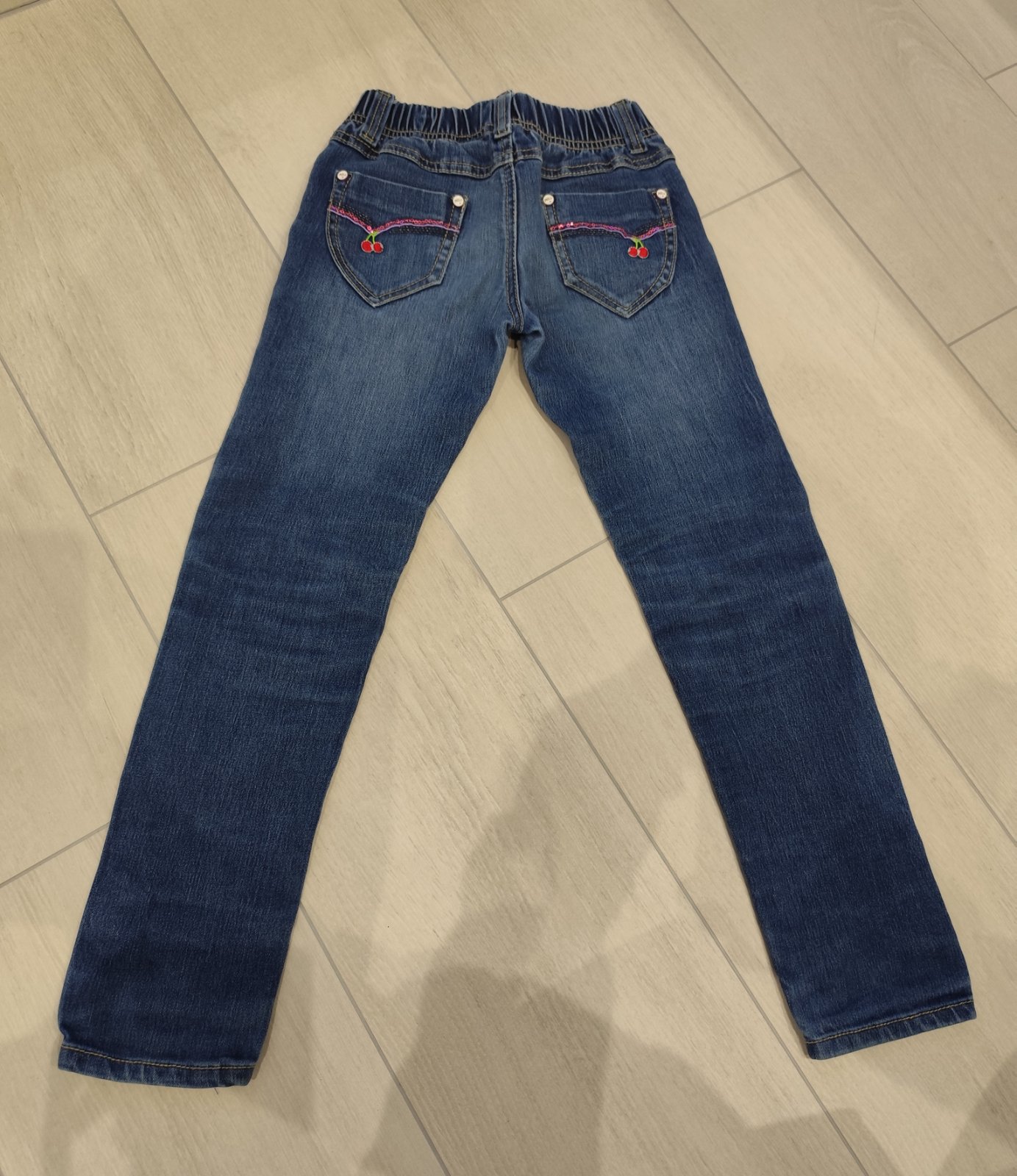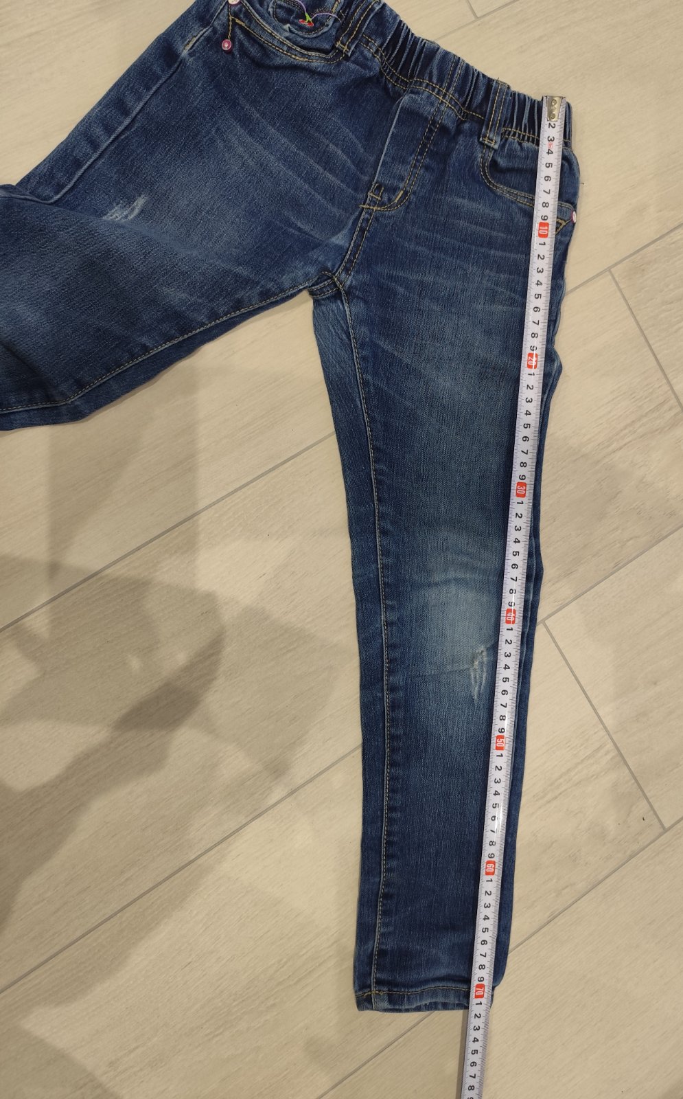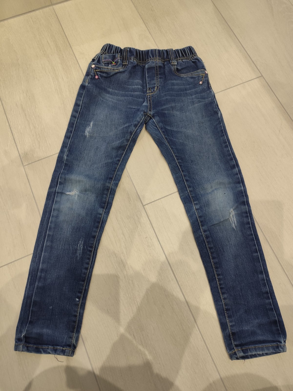 Predam pekné dievčenské rifle. Velkost 122. V pase gumickove. Dobry stav. Rozmery vid foto. Pozri aj dalsie moje inzeraty.