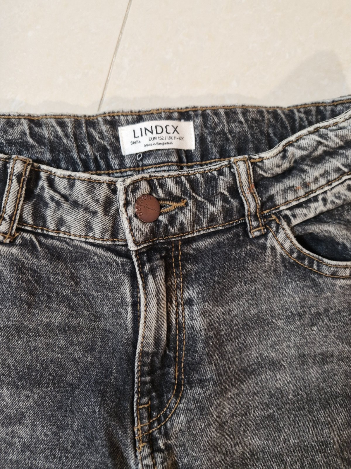 Mäkkucke slim rifle Lindex. Velkost uvedena 152 alebo 11-12 rokov. Objednala som cez net a myslim ze su urcene pre dievca. Neboli nosene. V pase na regulovatelnu gumicku, zapinanie na gombik a zips.