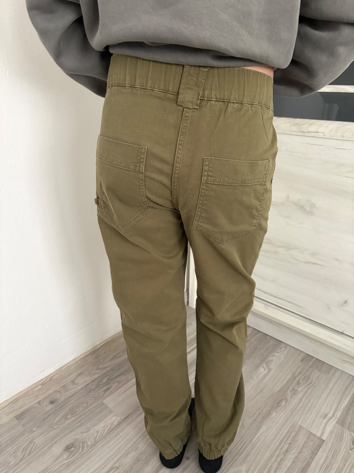 Predám olivové joggery značky Bershka, veľkosť S, celková dĺžka 103 cm, obvod pása 60cm, v páse je guma