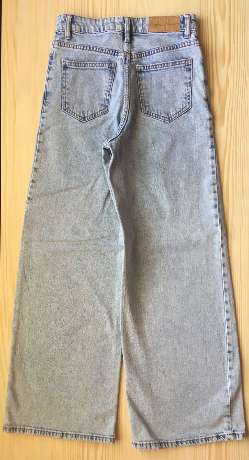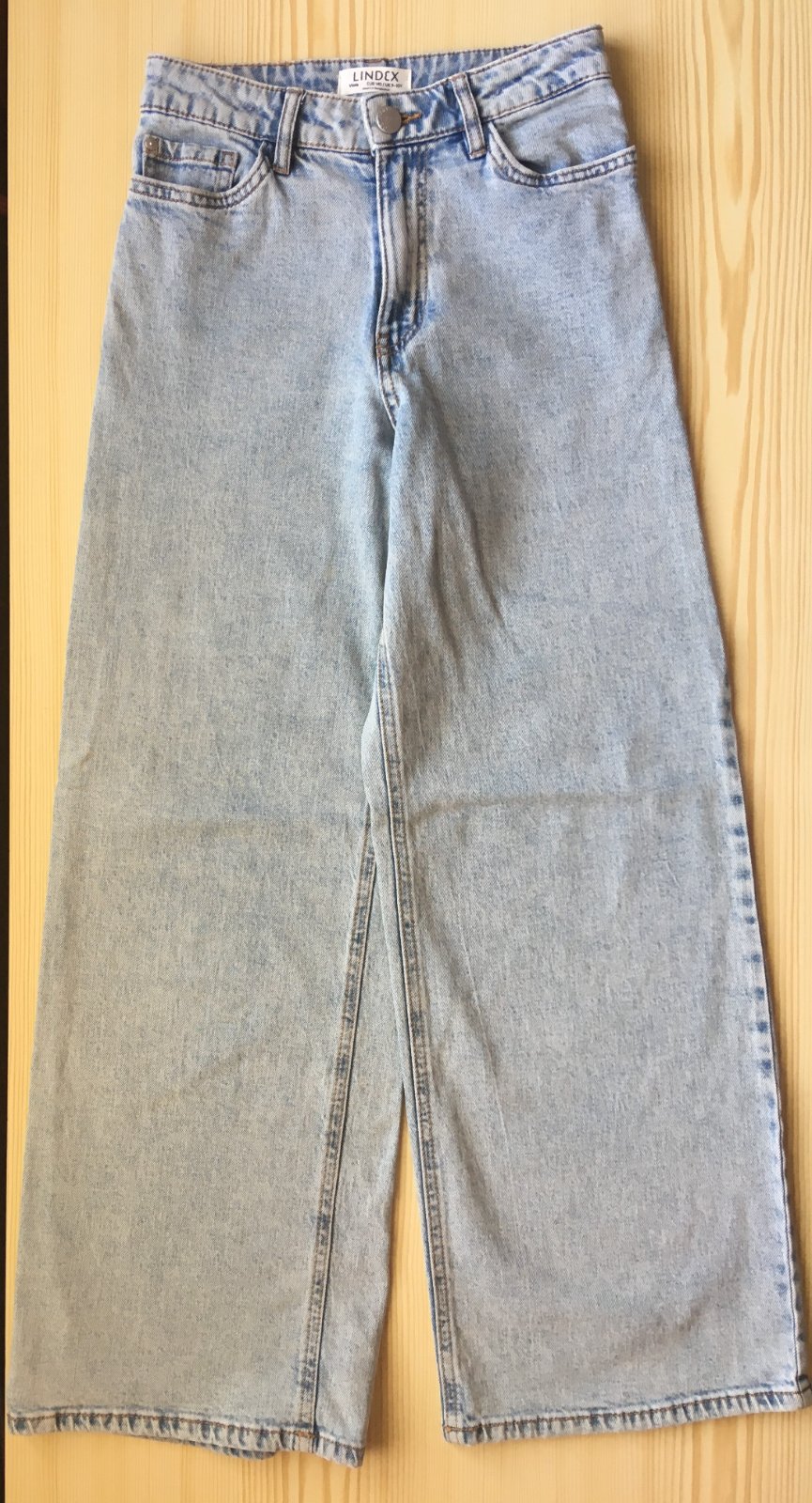 Dievčenské džínsy značky Lindex vo výbornom nosenom stave. Vysoký pás, extra široké nohavice s reguláciou v páse. Strih "Viola", uvedená veľkosť 140 pre 9-10 ročné dievčatko, ale určite sa dajú ponosiť aj dlhšie. Rozmery: šírka v páse 31cm, celková dĺžka nohavice 90,5cm, šírka nohavice od rozkroku 66,5cm.