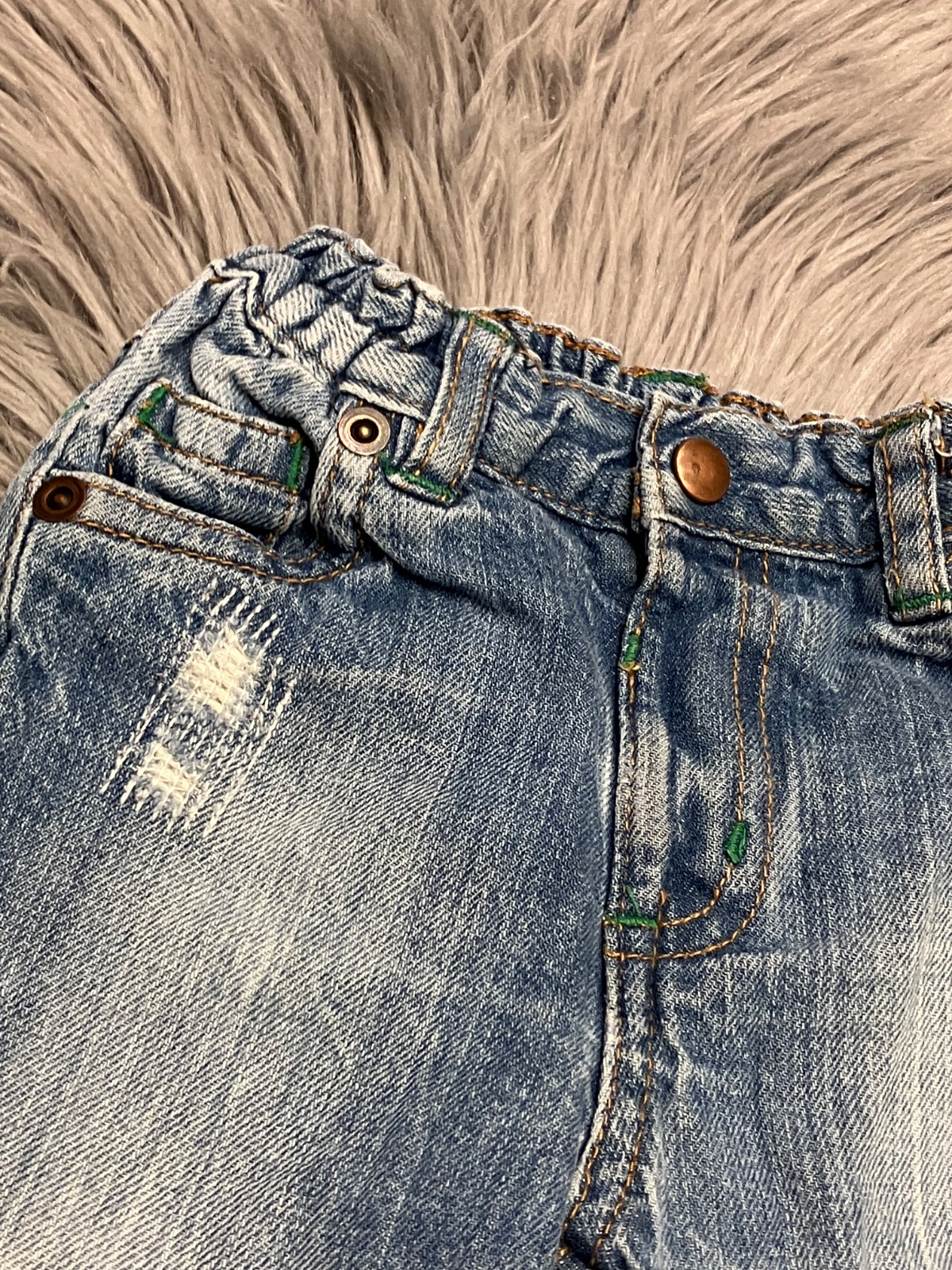 Chlapčenské rifle, pás na gumu, dve predné a dve zadné vrecká, pútka na opasok, nie sú elastické.
