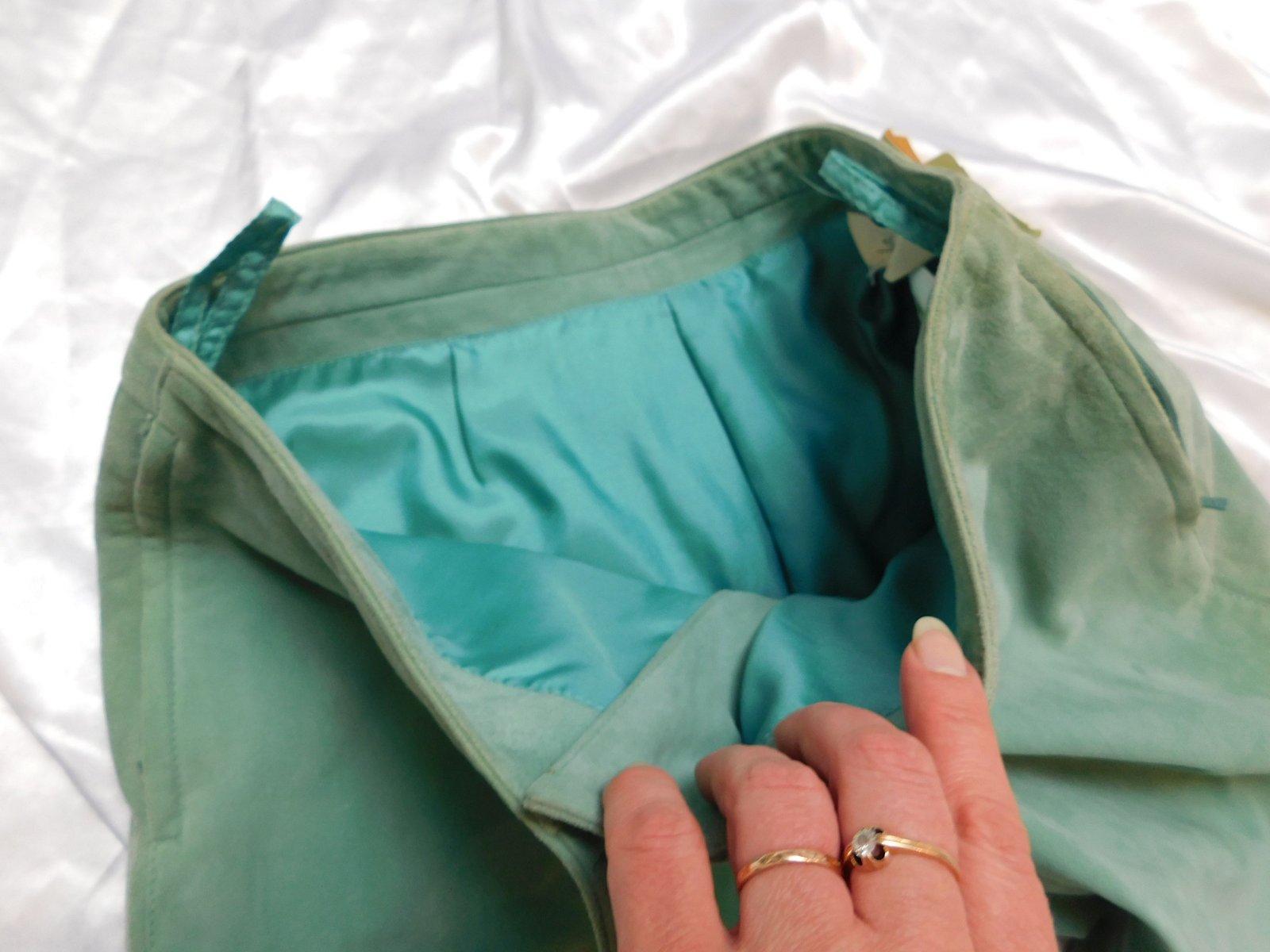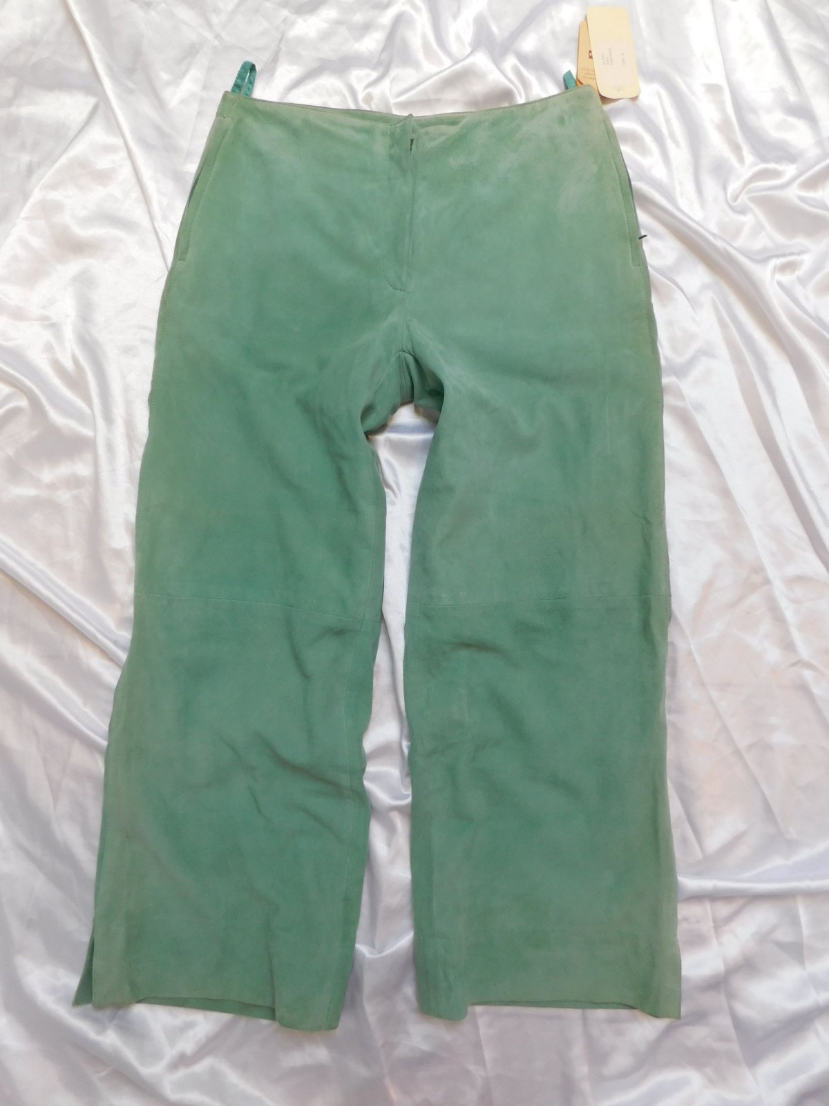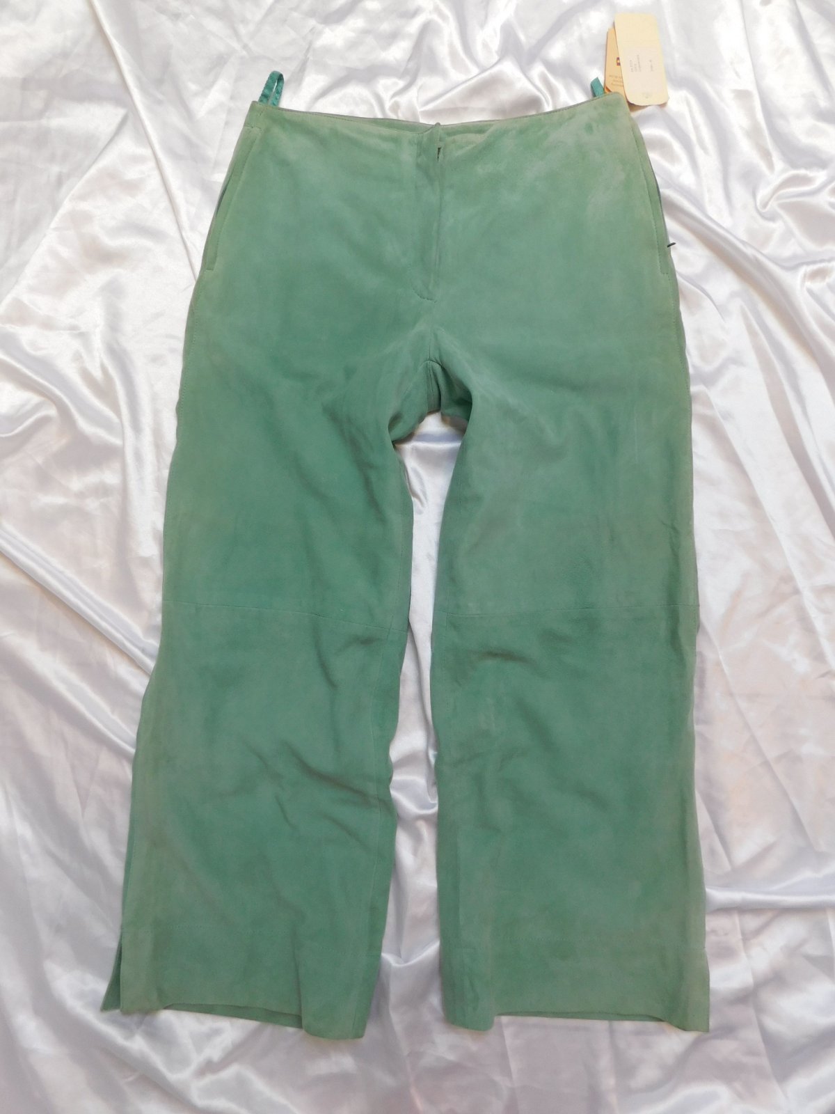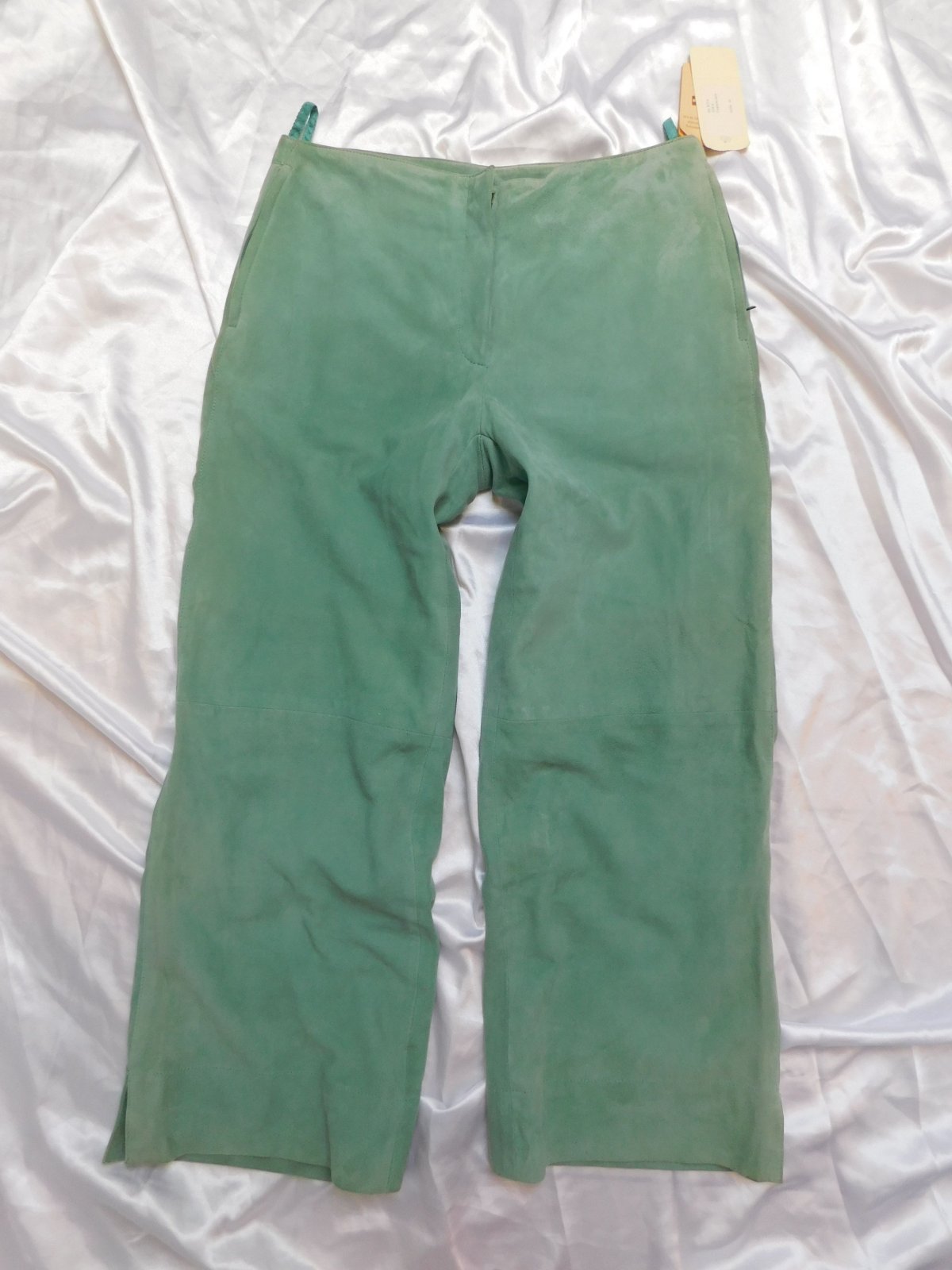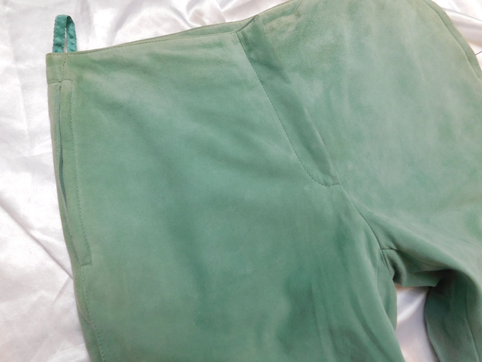 Damske kvalitne 7/8 nohavice z velurovej koži,matovej farby,s podsivkou,vpredu zips,bočne všite vrecka na zips.100%extra jemna velurova koža.pozor-po bokoch,pasovka a pre vreckach jemne zašpinena,inak nove s visačkou.PC 69€. j42