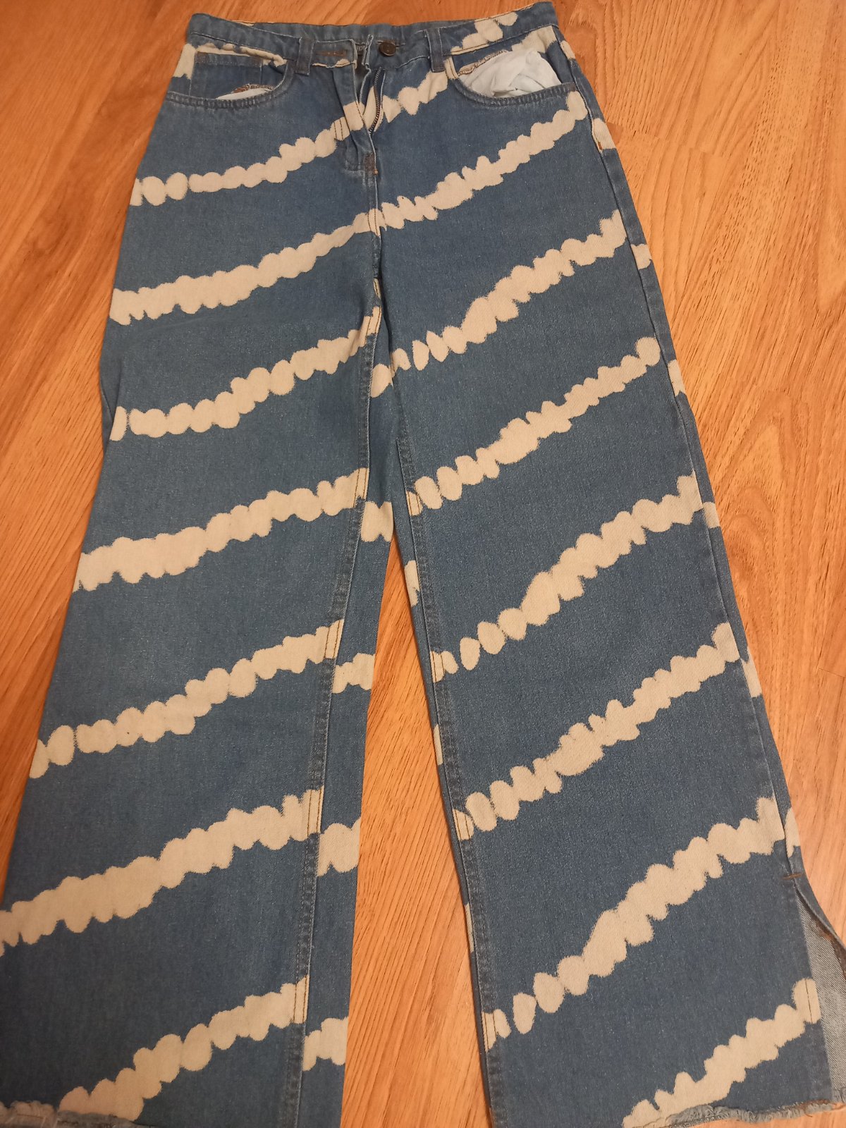 Predám 1-krát oblečené trendy rifle - v Top stave bez známok nosenia. Veľkosť. 170 dlžka: 96cm, pás v kľude:36-37cm Cena je 5,50€ + poštovné