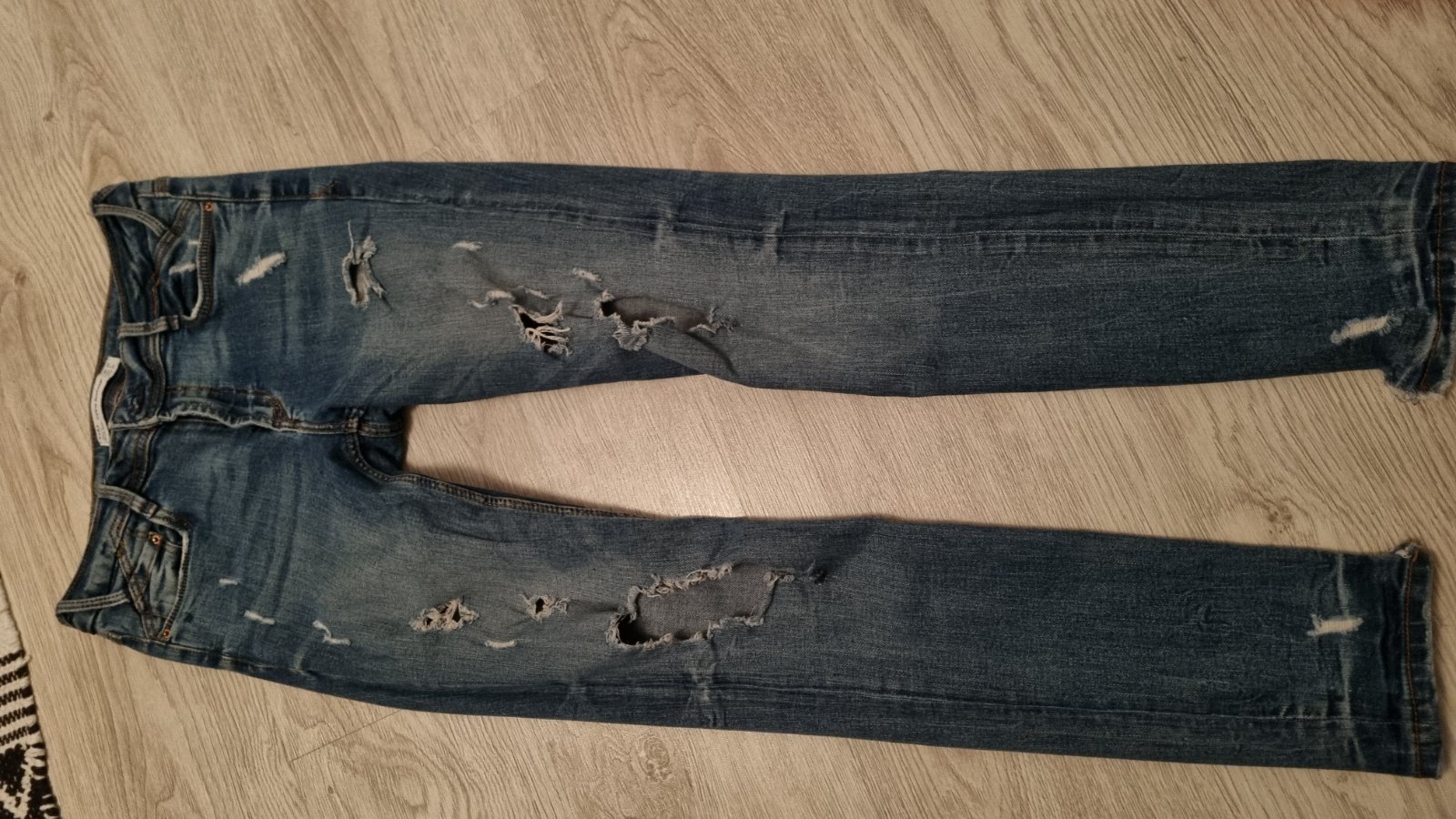 Ponúkam vo veľmi dobrom stave rifle, slim, Zn. Zara. Rifle maju perličky, posobia veľmi zaujímavo, rôznym spôsobom kombinovateľné, aj elegantne.. Rifle nemaju poškodenia.