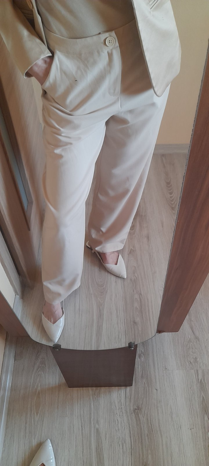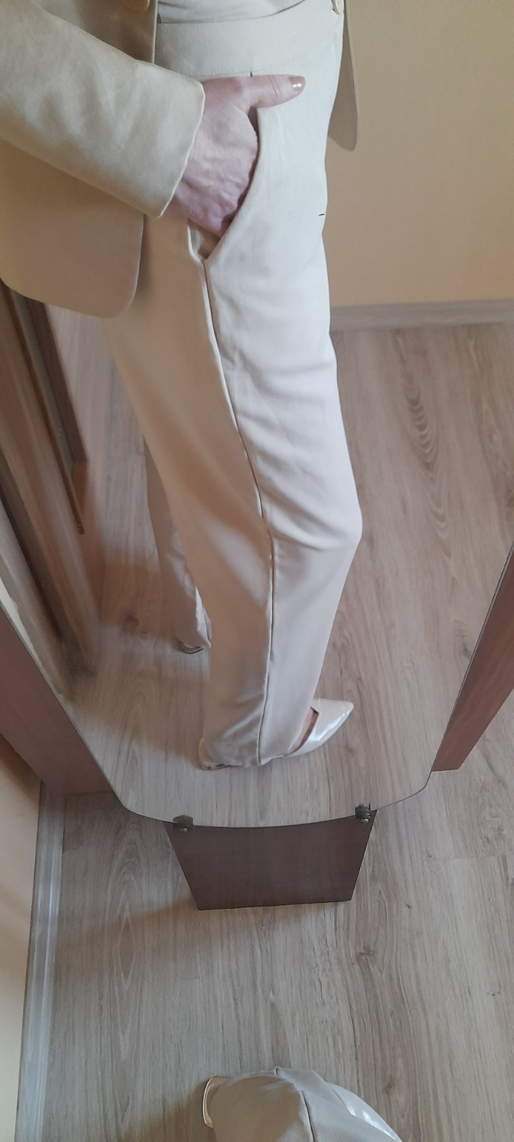 1 x vzaté široké nohavice s vysokým pásom zn. Tezenis. Super stav aj príjemný materiál. V ponuke aj sako, kuk celý bazár