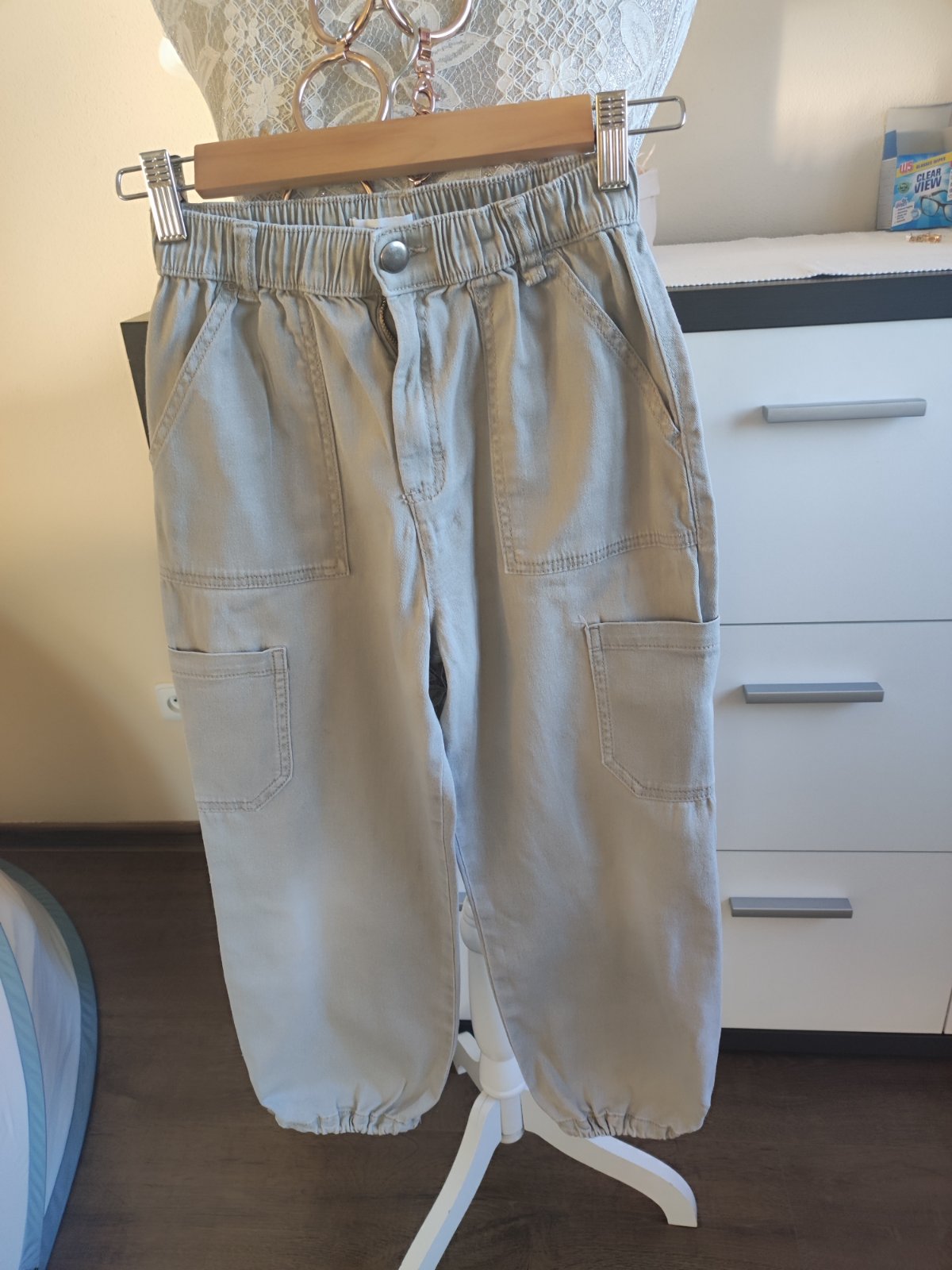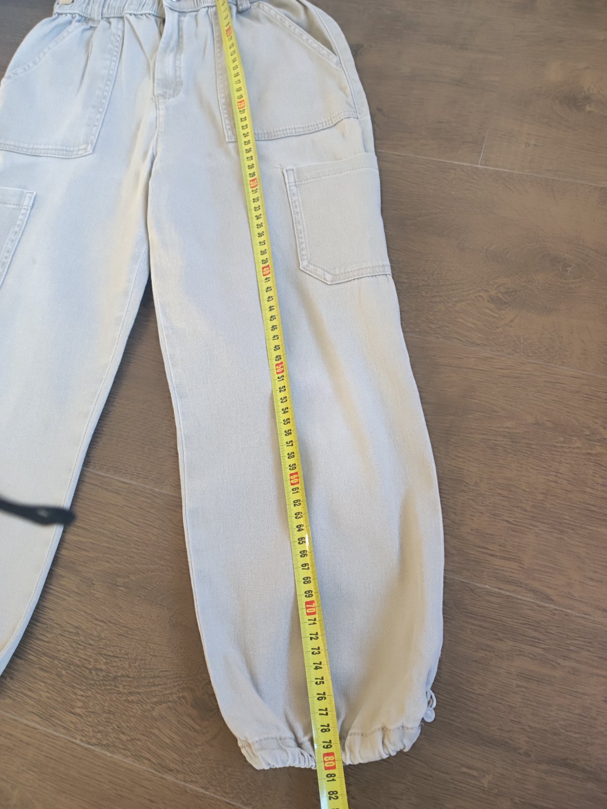 Predám po dcérke iba párkrát oblečené nohavice na sposob riflí.Bez poškodení,super stav.Vpredu dve vrecká,vzadu dve našité ozdobné vrecká.Zn.Reserved,veľk. 140,miery : dĺžka 81 cm,dĺžka od rozkroku...