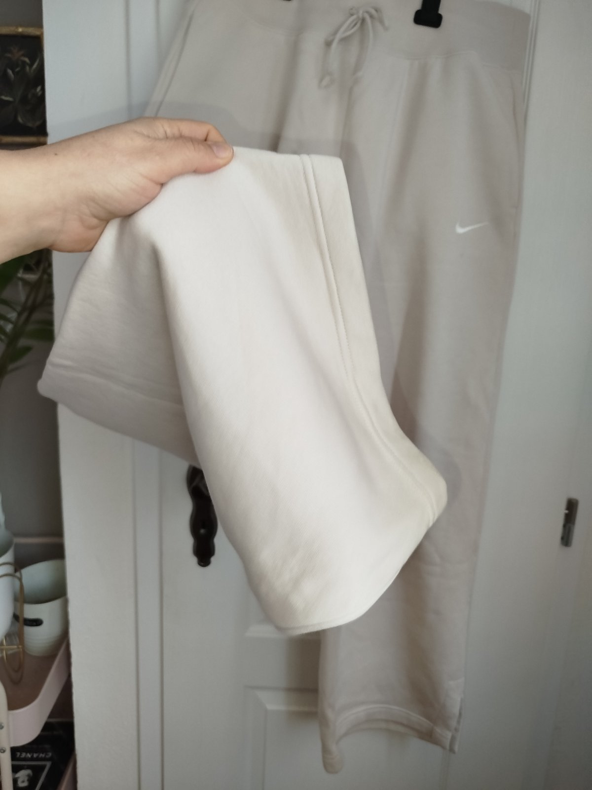 Krémové bavlnene široké tepláky Nike originál sú bavlnené majú široký pružný pás ktorý sa dá zúžiť snurkami,vrecká sú veľmi pohodlne málo nosené.