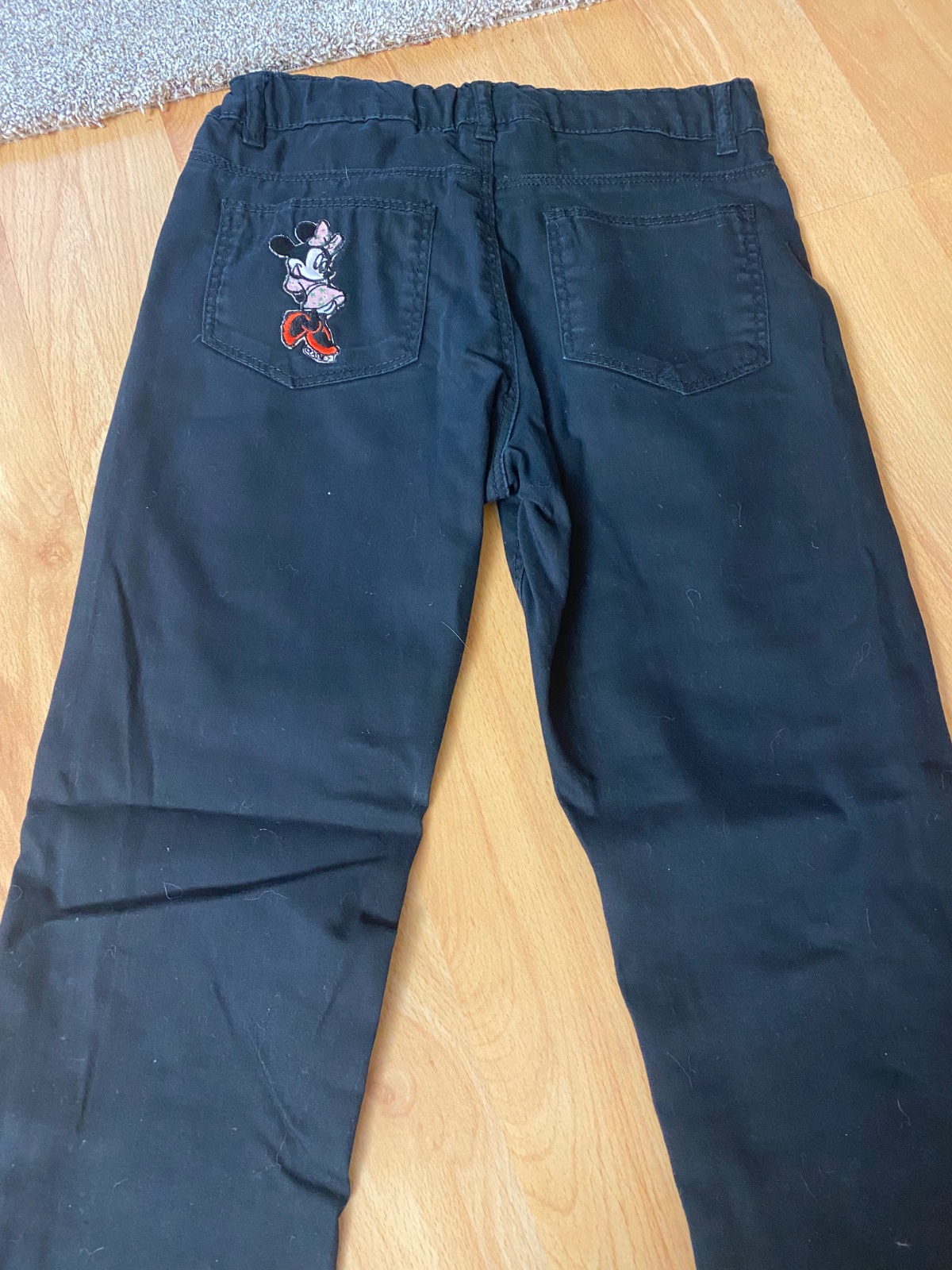 Čierne nohavice H&M . Nosené ale v top stave bez známok nosenia . Na zadnom vrecku je nažehlovačka Minnie dá sa dať dole . 😊