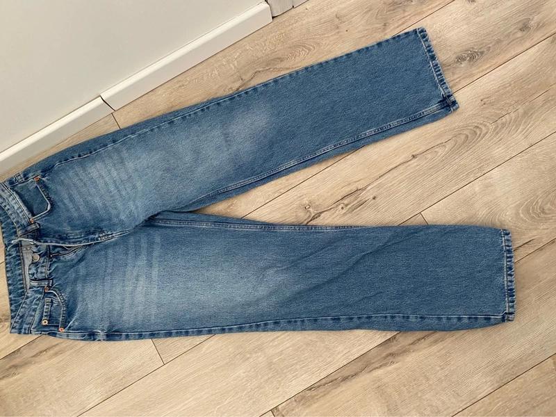 Rifle maju rovny strih, vysoky pas, malinko sa nitka uvolnila nad gombikom.