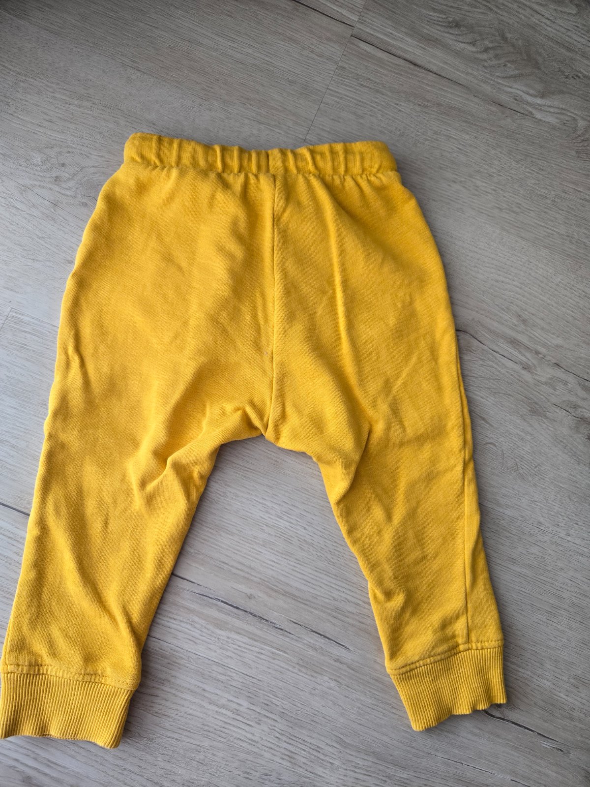 Mäkké bavlnené tepláky pastelovožltej farby Bočná dĺžka 101cm Vnútorná od rozkroku 71cm Pás na gumu + šnúrku na stiahnutie, v kľude 2x41cm až 2x50cm max Oblečené na pár hodín raz, dcére nevyhovuj...