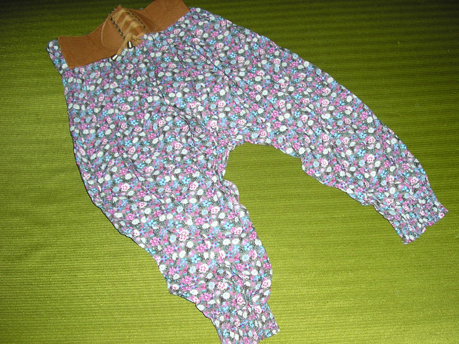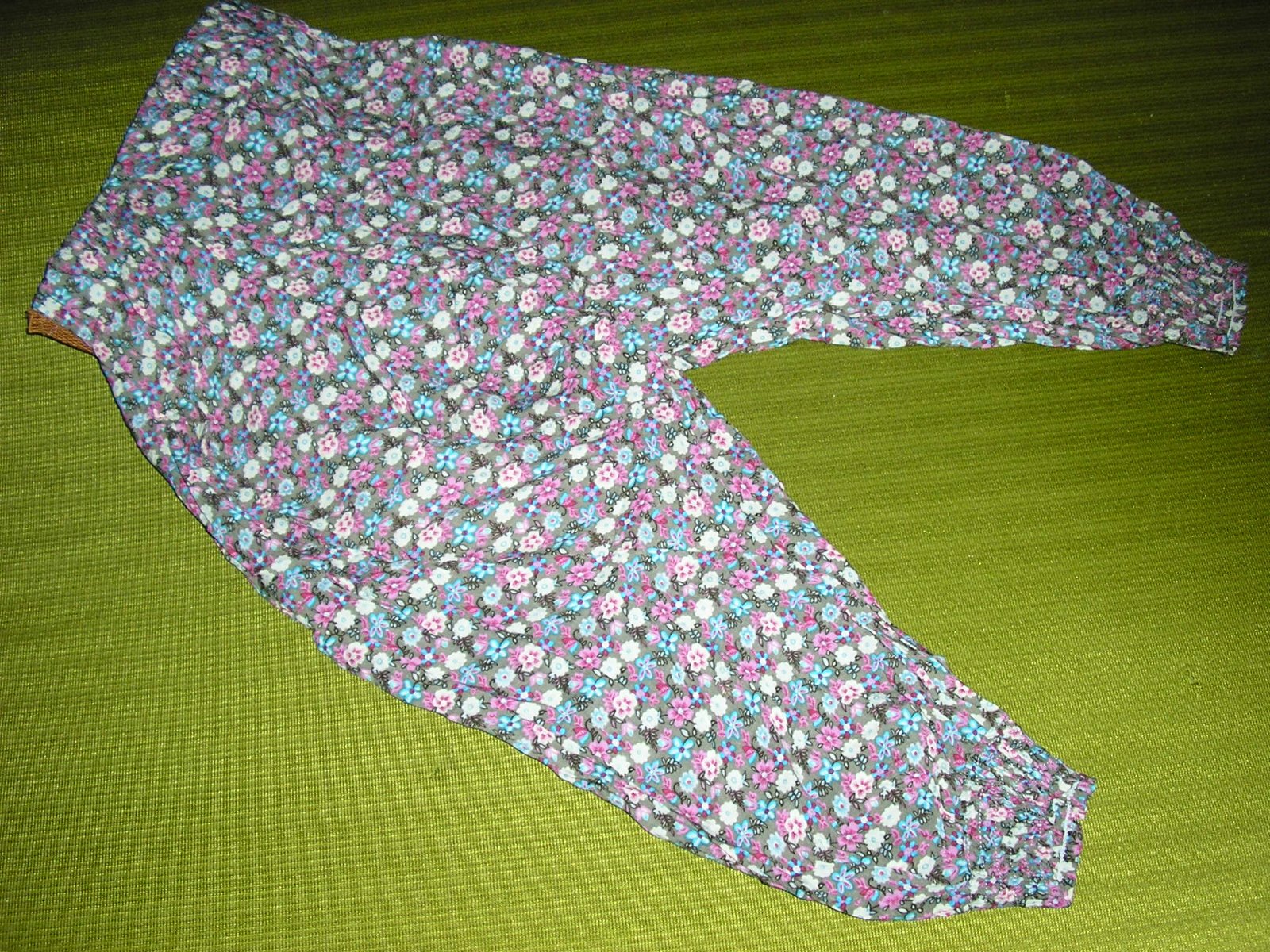 Kvietkované nohavice ¾ sú trošku so zníž. sedom. Sú veľmi príjemné a pohodlné. Bez fľaku a poškodení. skoro nové.