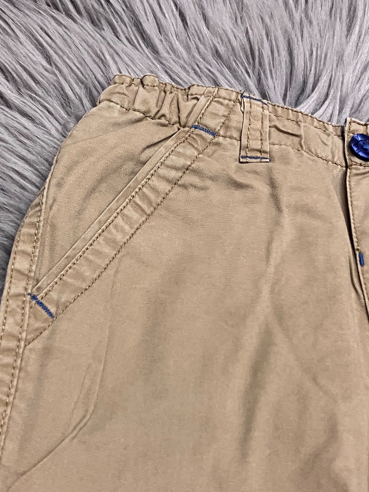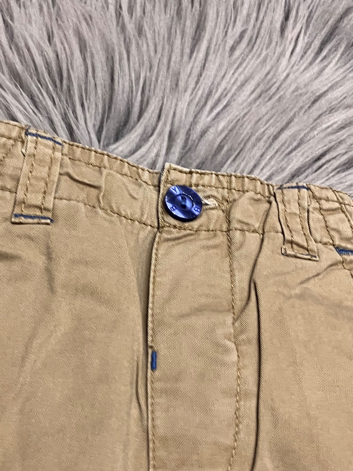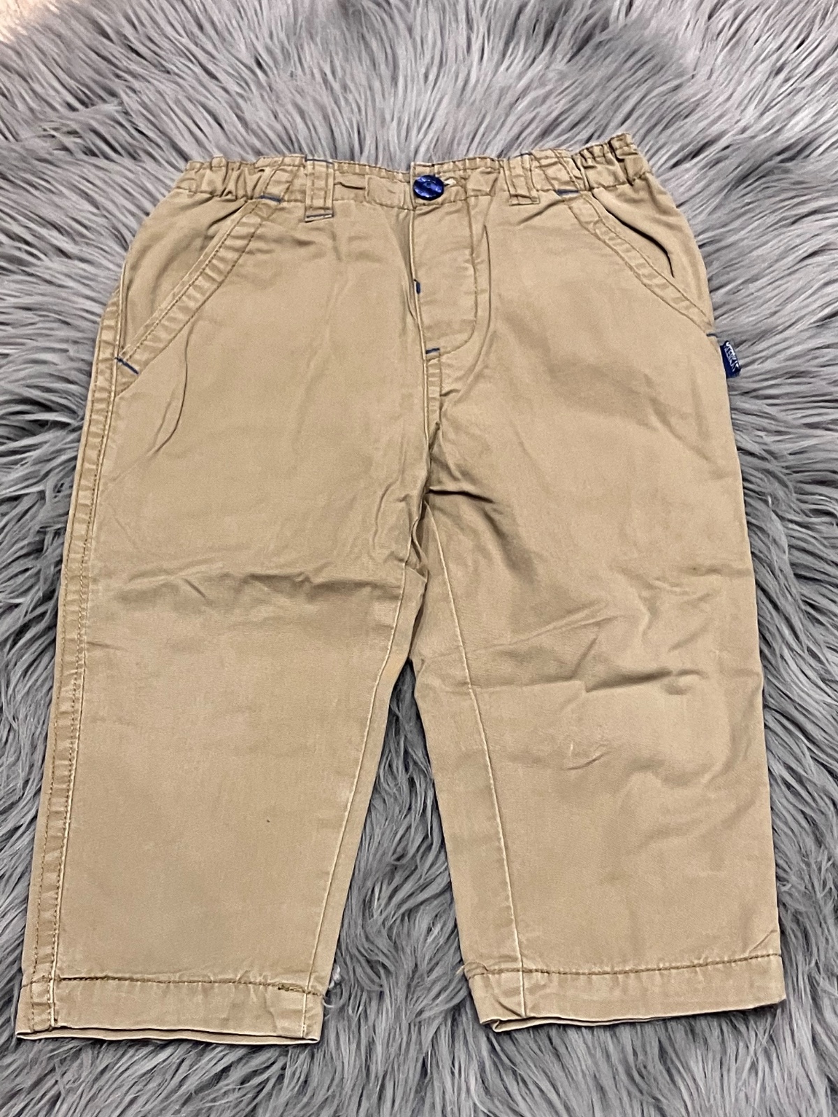 Chlapčenské nohavice, podšité, zapínanie na jeden gombík, nastaviteľná guma v páse, nie sú elastické, materiál vrchná látka 100%bavlna, podšívka 65%polyester 35%bavlna.