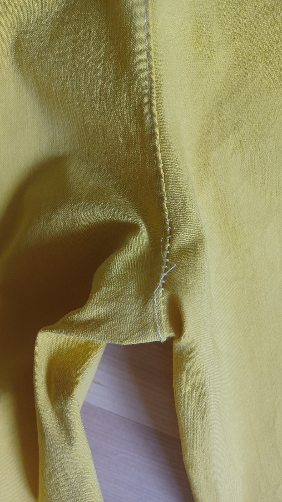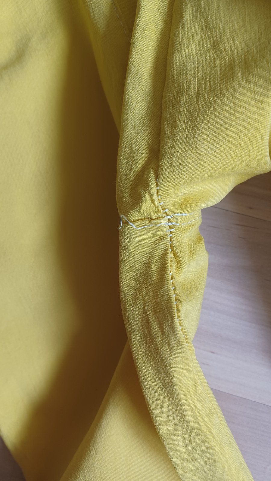 Medzi nohami je trochu pustená niť, bude to treba prebehnúť na stroji