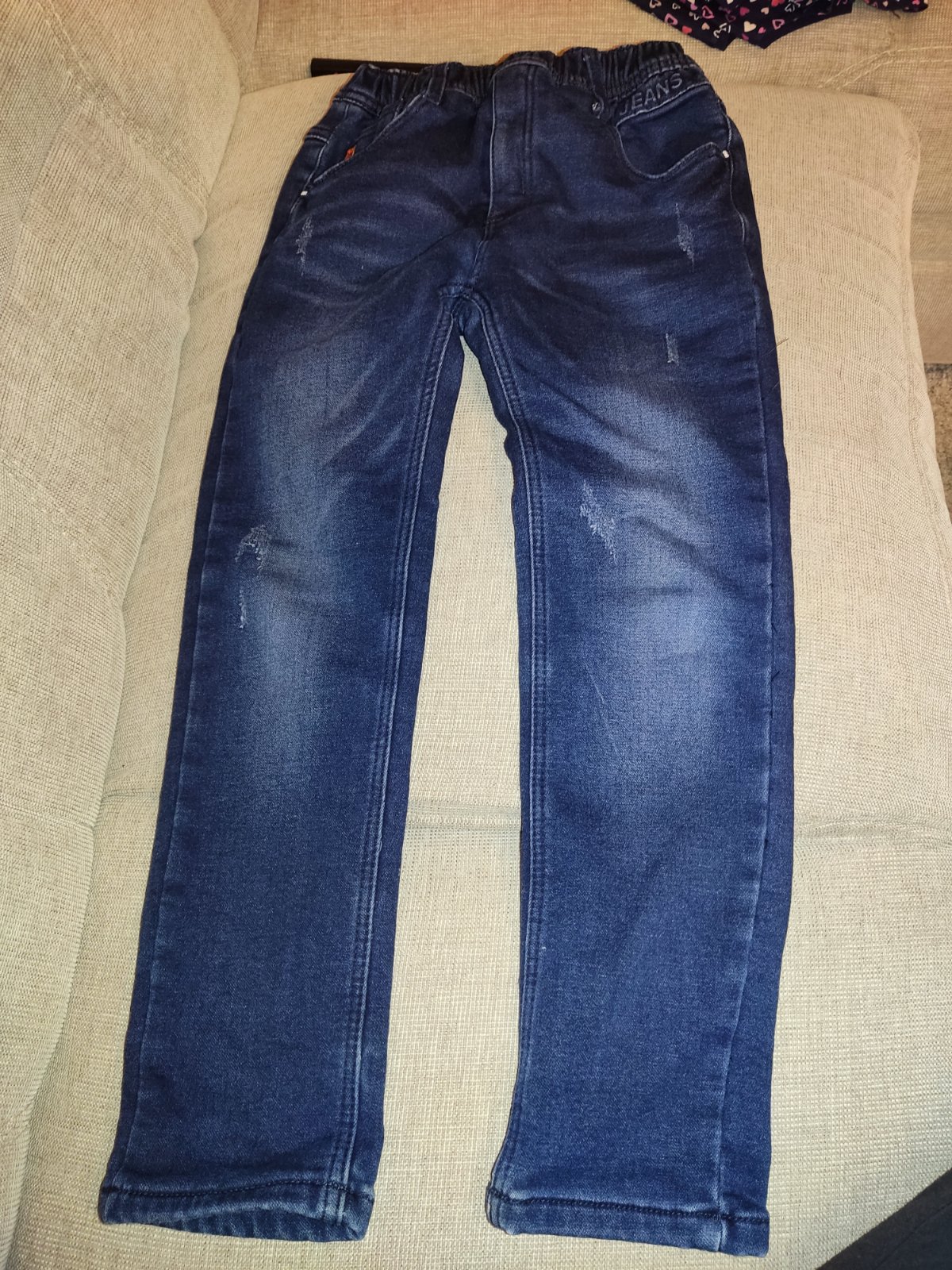 Predám nosené zateplené rifle v dobrom stave. V páse guma. Veľkosť cca 140, riaďte sa radšej rozmermi.