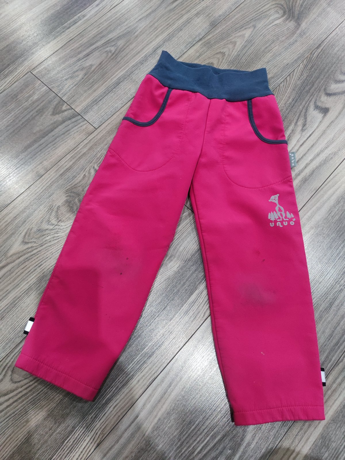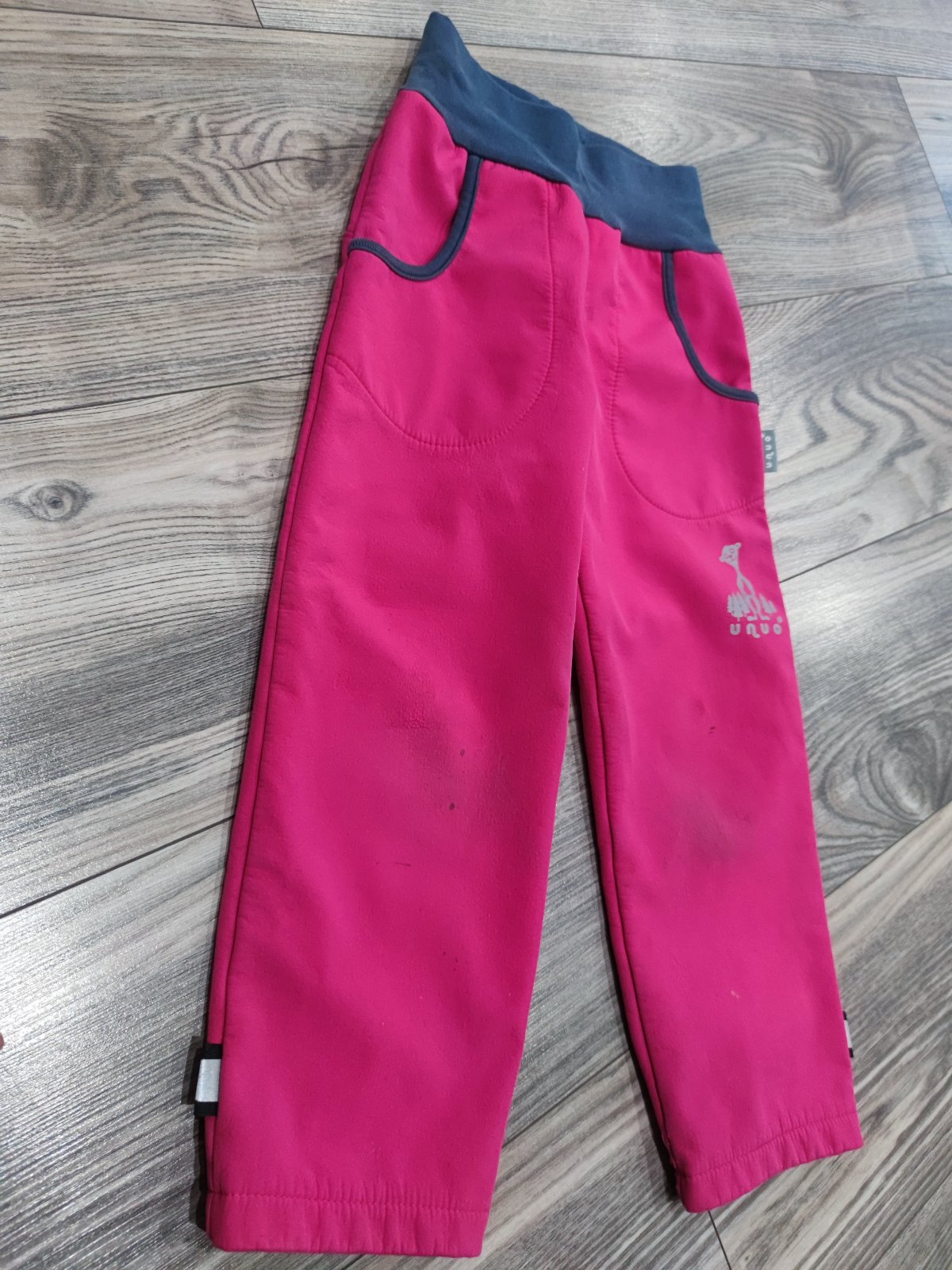 Predám moderné oteplené nohavice vhodné na prechodné obdobie. Zachovalé, bez poškodení. Len na ľavej nohavici sú 3 menšie škvrnky - viď. foto. Možno sa to časom vyperie. Ale do škôlky určite perfe...