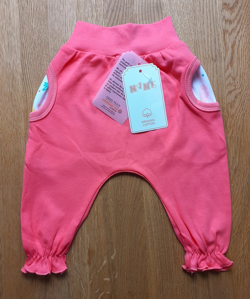100% bio bavlna. Volániky na členkoch. Tenké/letné. Značka Nini, veľkosť 68.