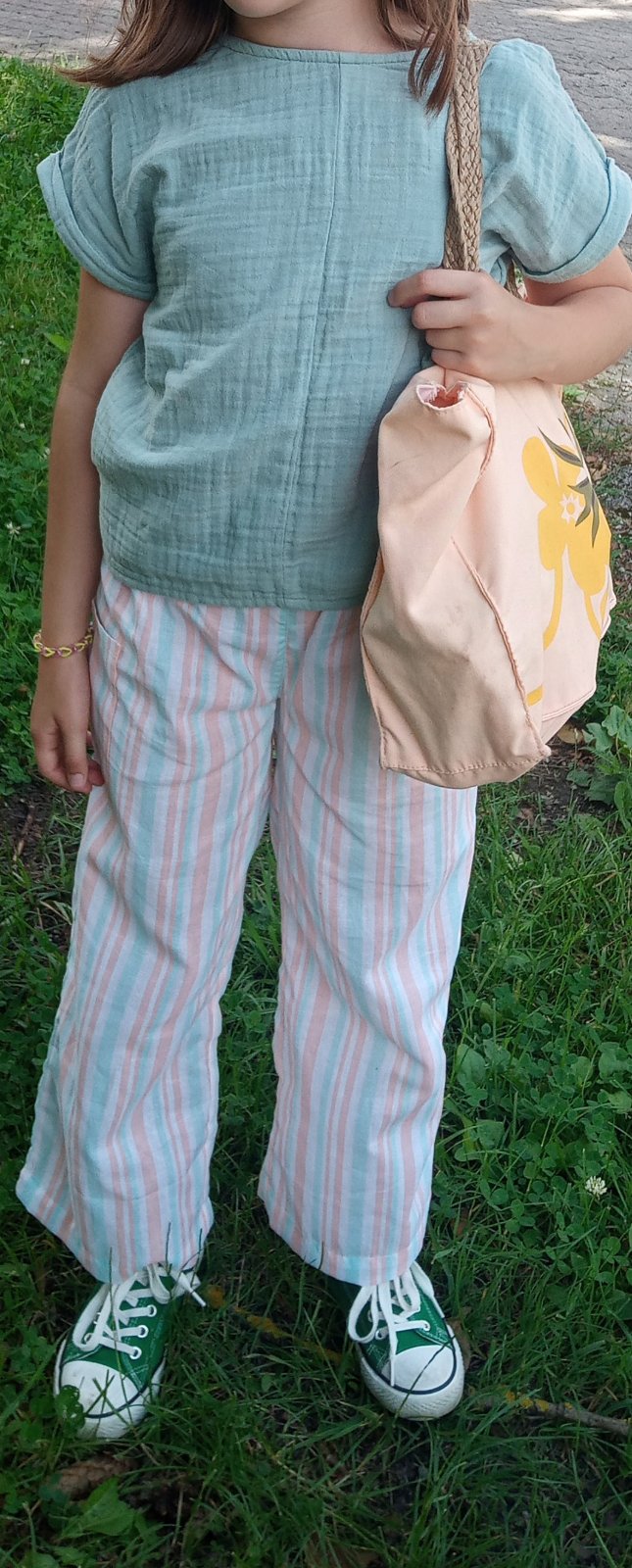 Kvalitná dánska značka. Ľahké upletove letné nohavice, super na letne nosenie, cestovanie. V pase plocha guma, funkčná snurka. Bočny čierny pas super ukáže. Mame každý rok. Pekny stav bez poskodeni...