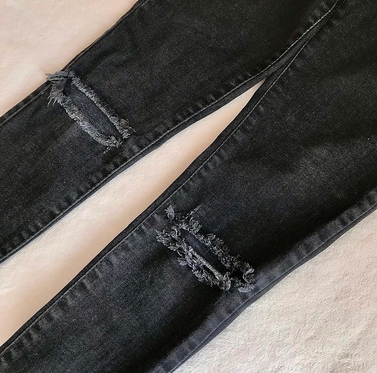 Rifle s deravými kolenami