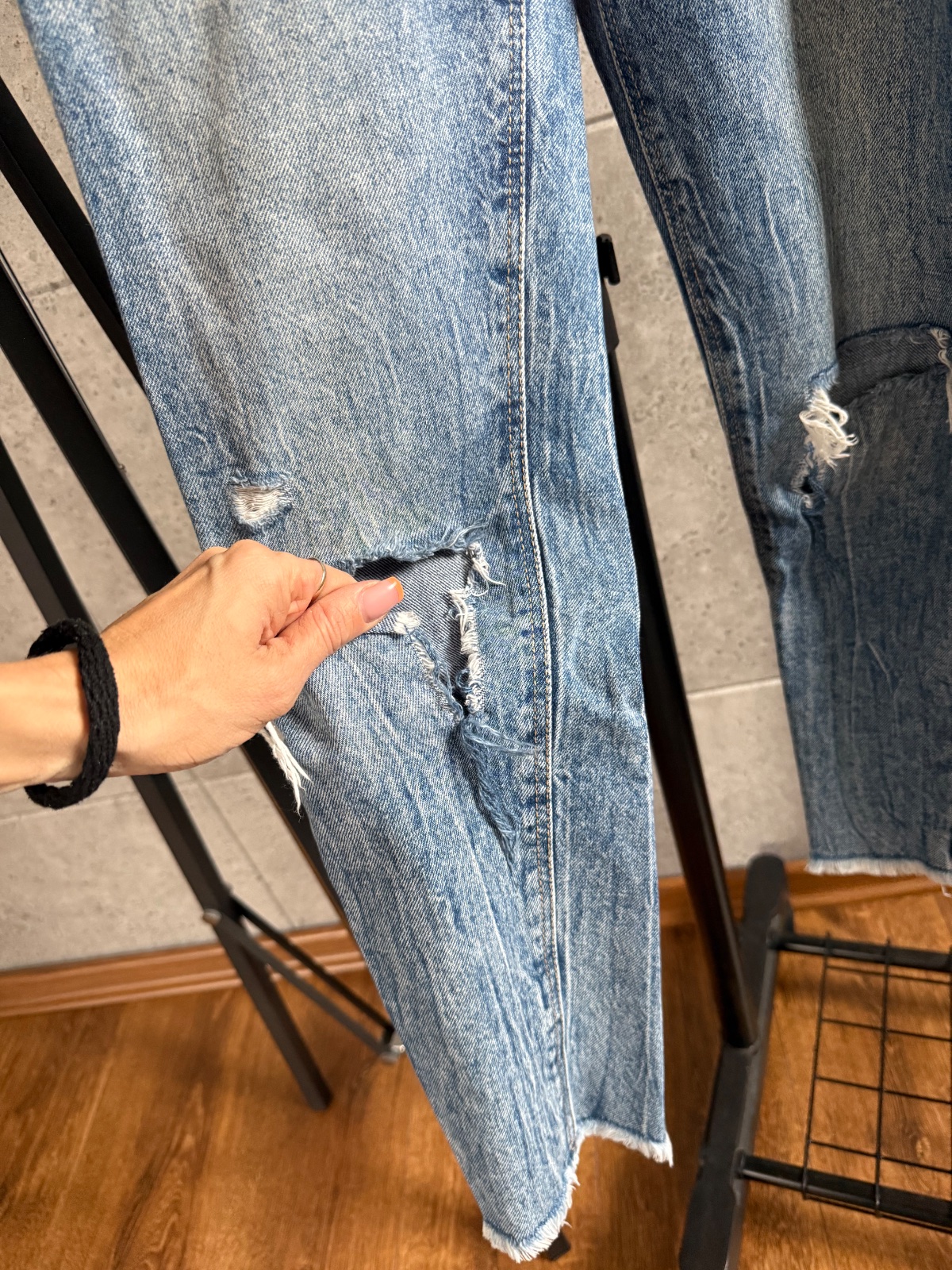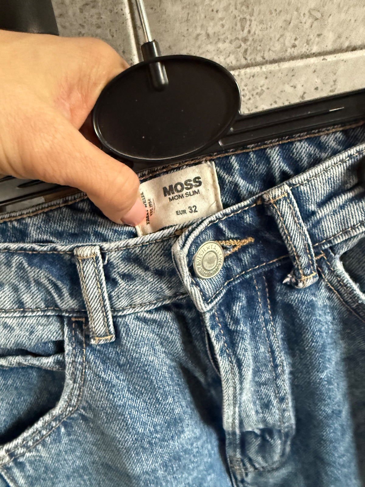 Trhané jeansy od zn. Bershka, veľkosť 32, bezchybné. Pás 34 cm, predný sed 19 cm, dĺžka 94 cm. Pevná riflovina.